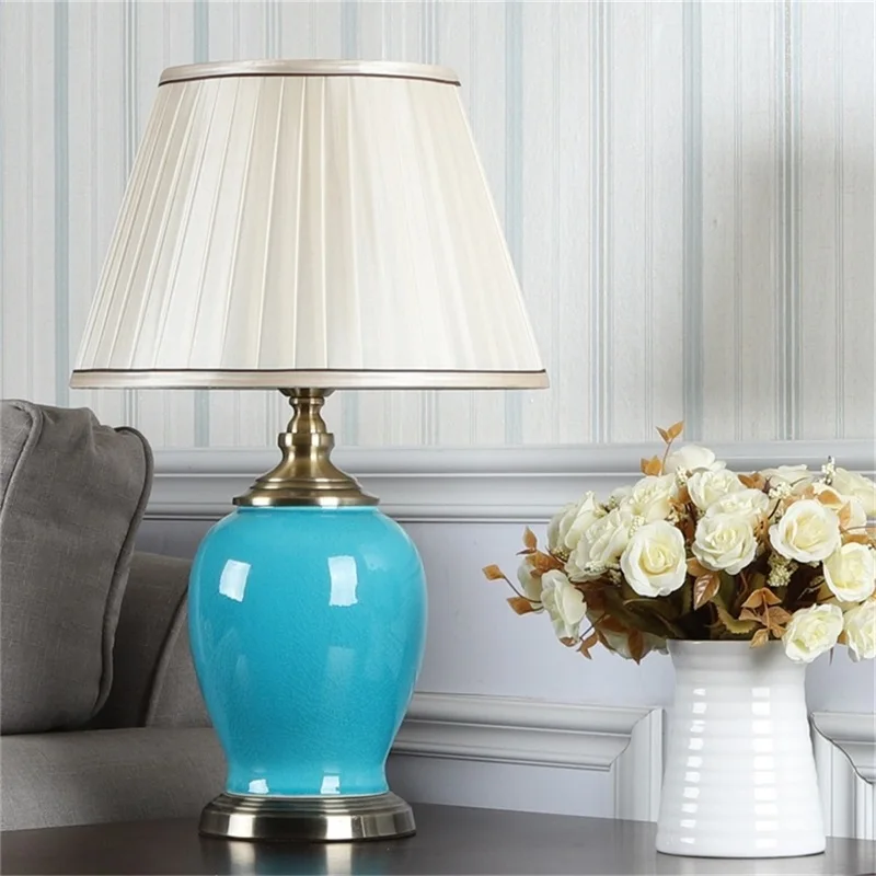 Керамическая Настольная лампа AOSONG, медная, роскошная, бледно-син...
