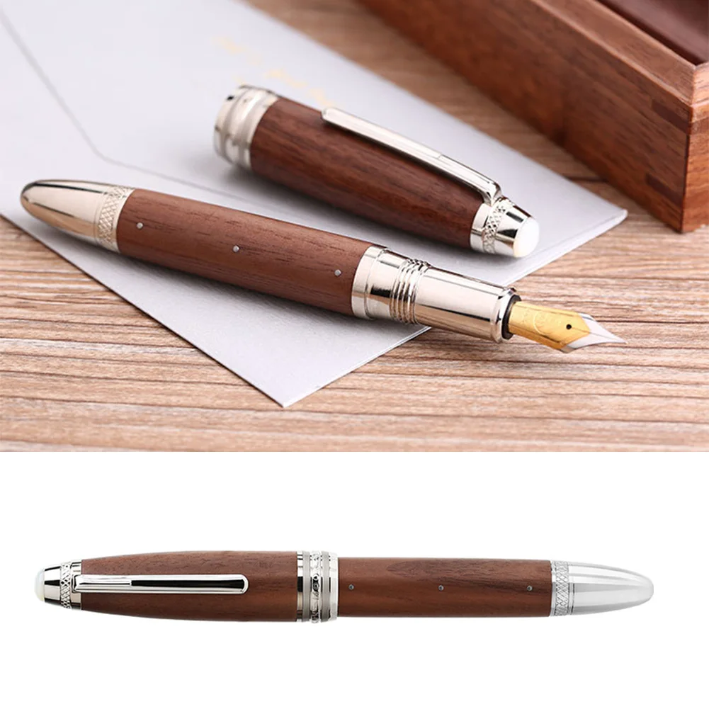 Ручка перьевая Majohn M1000, деревянная ручка с заклепками, с сереб...