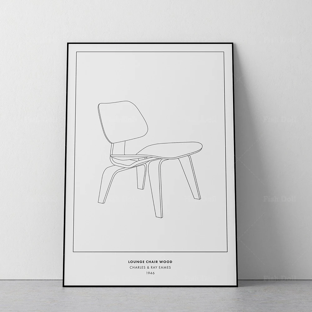 Постер Eames с изображением стула для отдыха середины века, ретро-м...