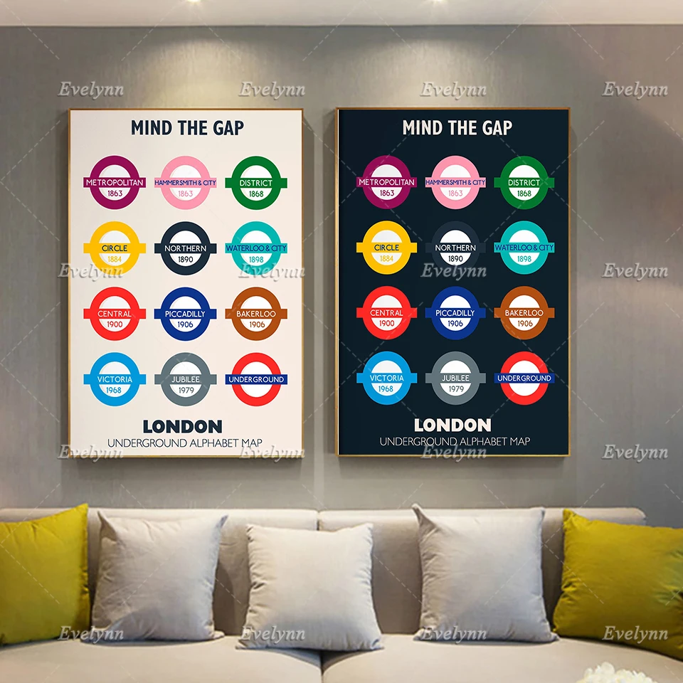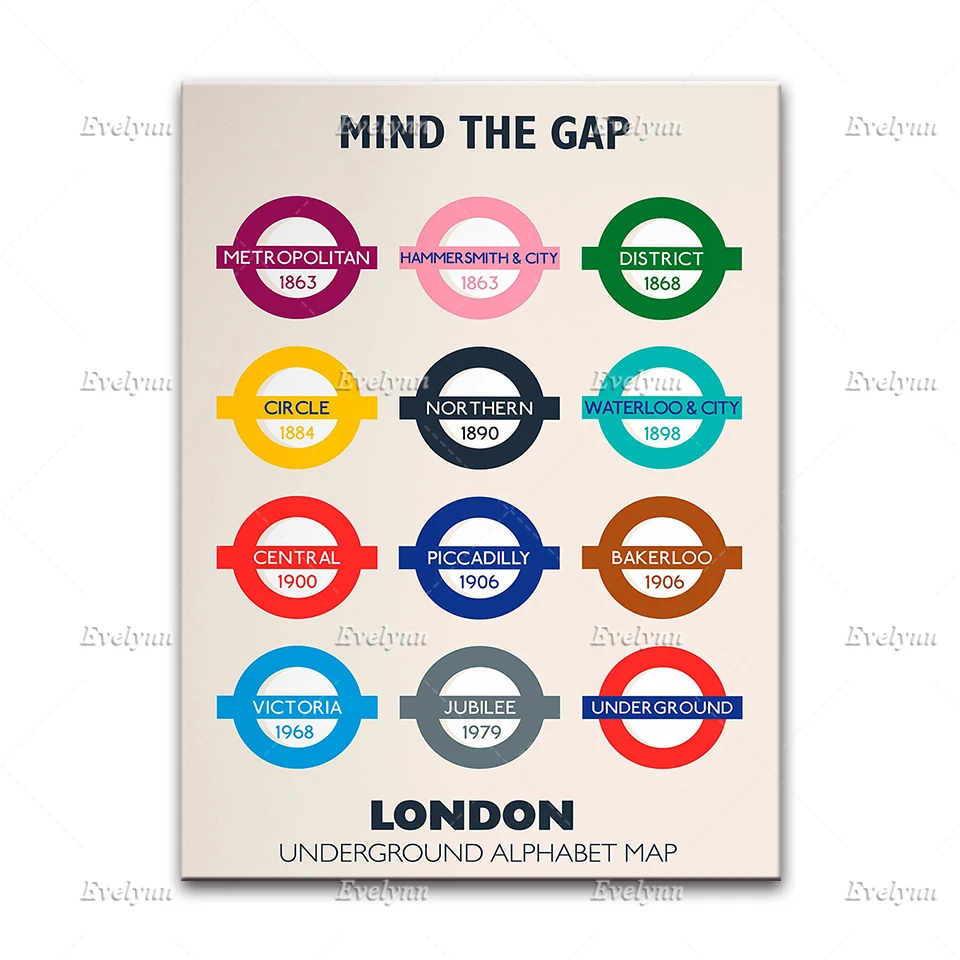Лондонская фотография, карта алфавита метро, знак метро, арт-тюбик, настенные художественные принты, домашний декор, холст, уникальный подарок