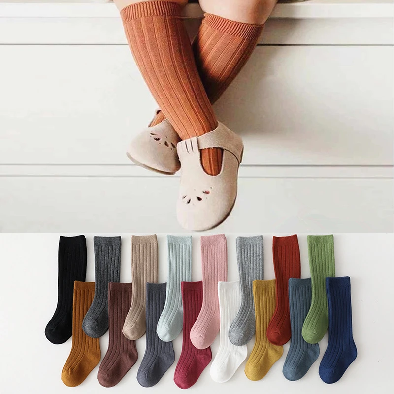 Детские носки Spainish, хлопковые дышащие мягкие носки в полоску для маленьких мальчиков и девочек, детские гольфы до колена, длинные носки, школьная форма, носки