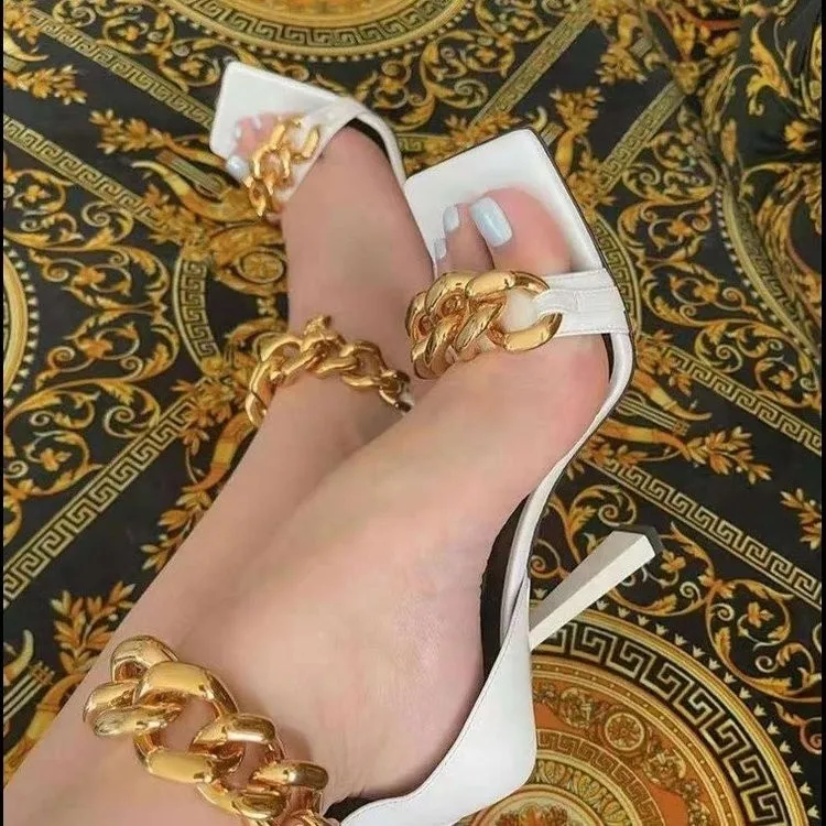 Босоножки женские на тонком каблуке, туфли-лодочки, квадратный носок, металлическая цепочка, пикантная модная обувь, большие размеры, лето 2021