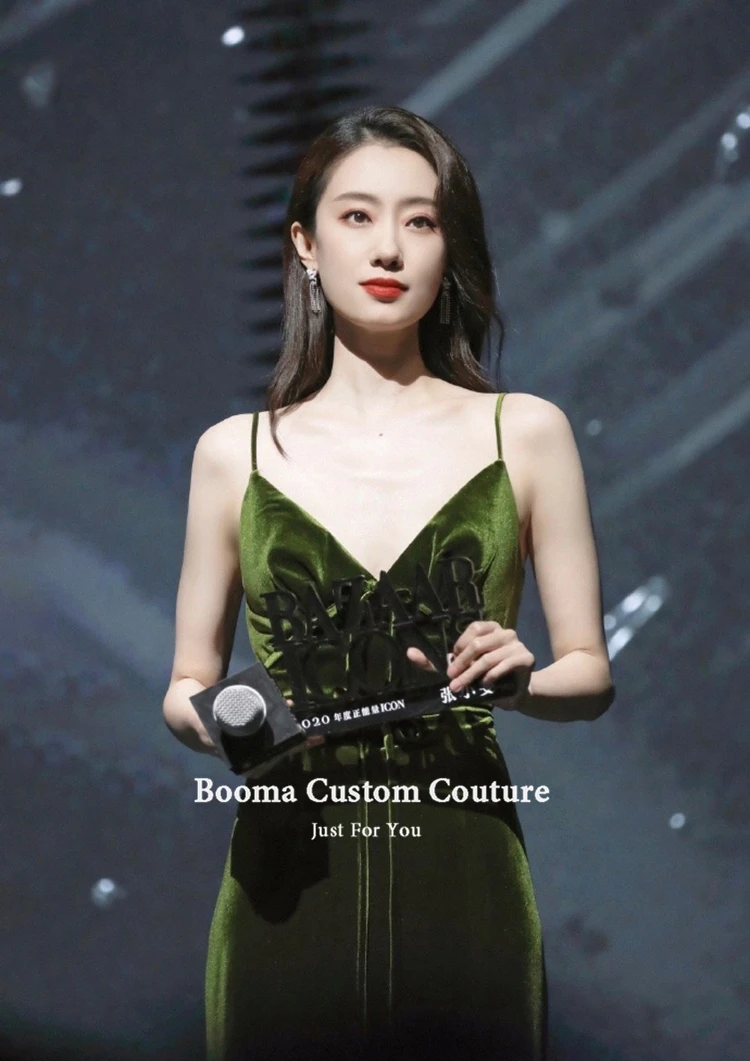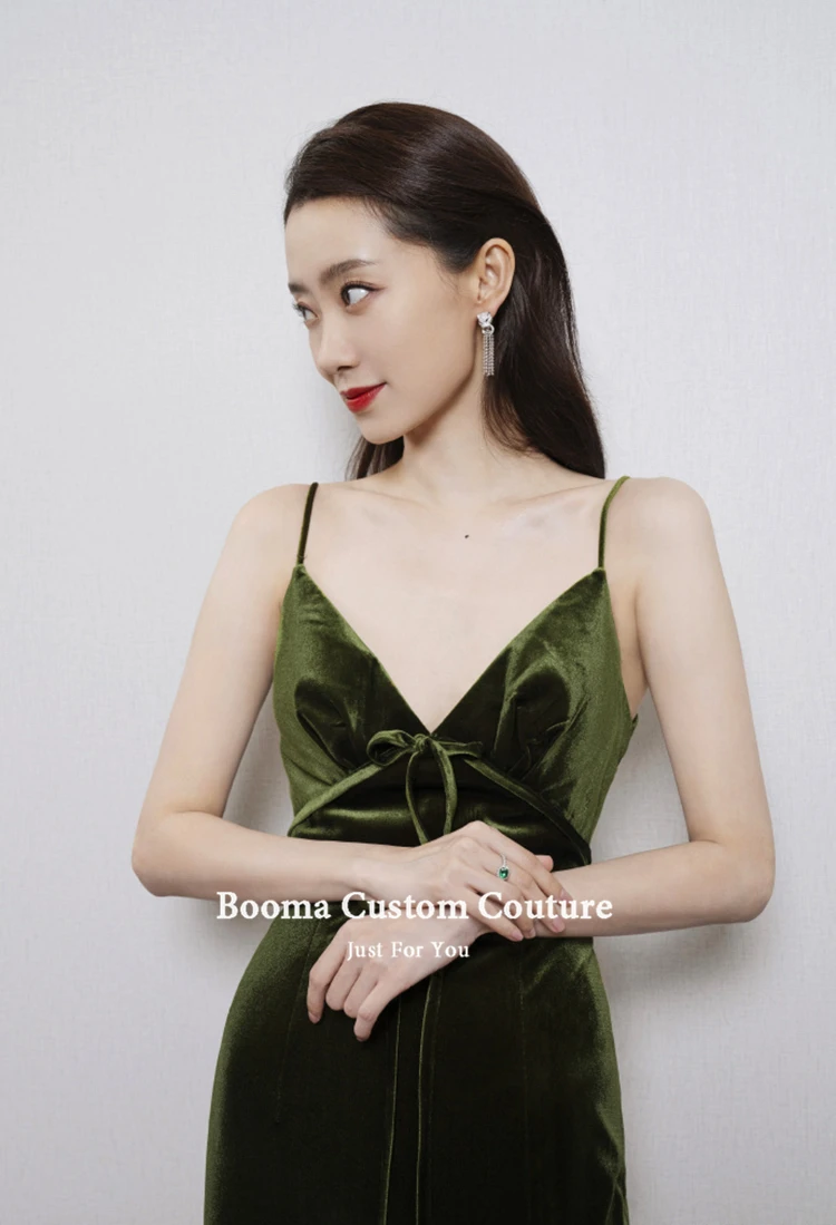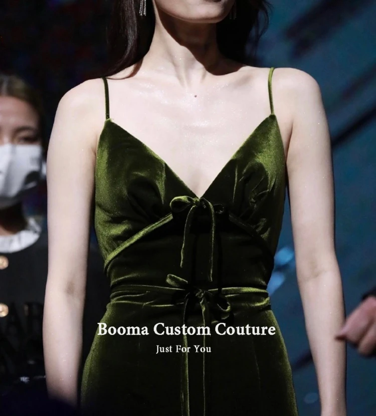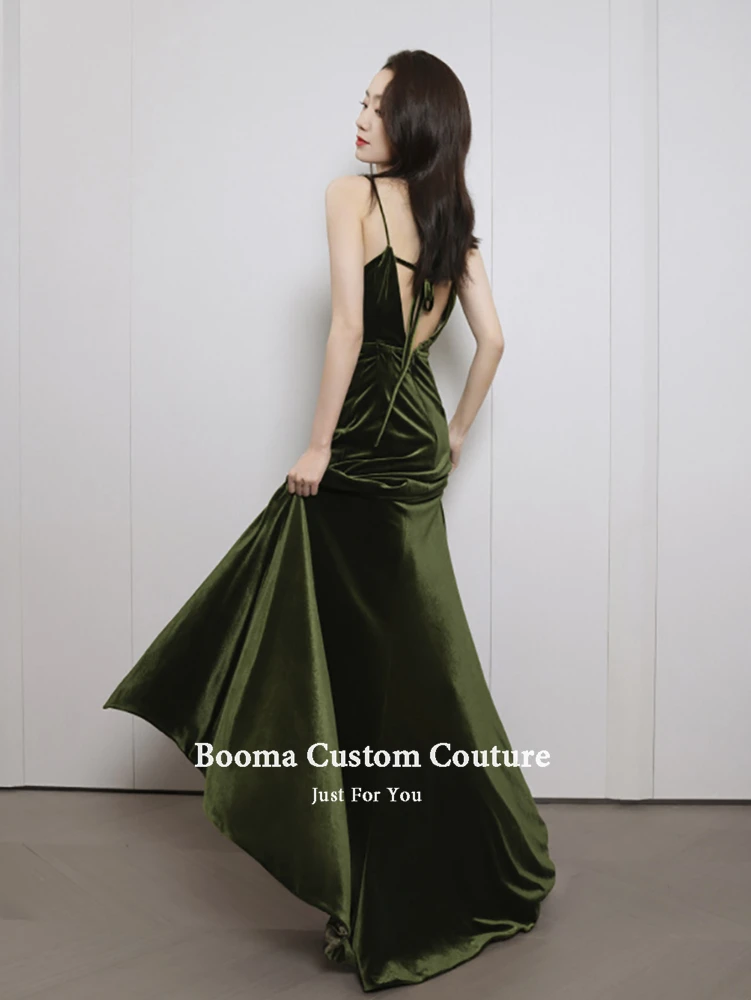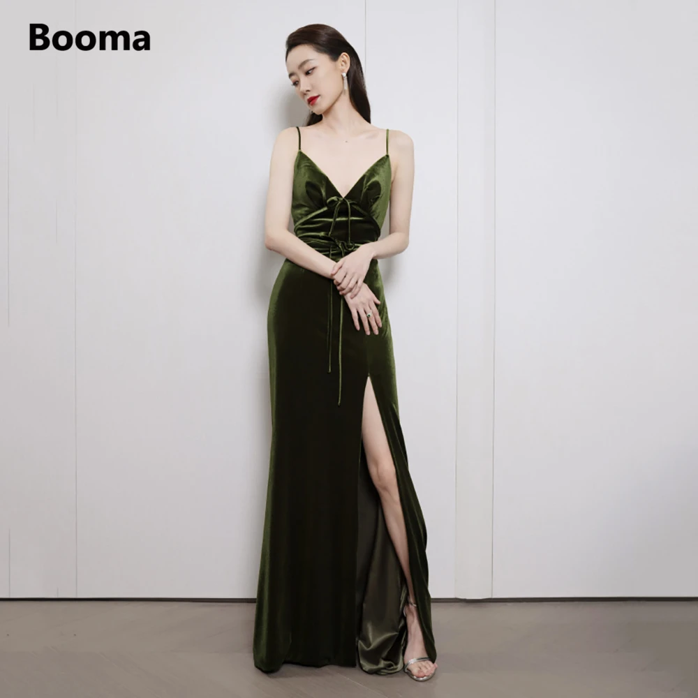 Booma оливково-зеленая бархатные Вечерние платья на бретельках с v-образным вырезом Высокий разрез велюр вечернее платье с открытой спиной Длинные Вечерние платья