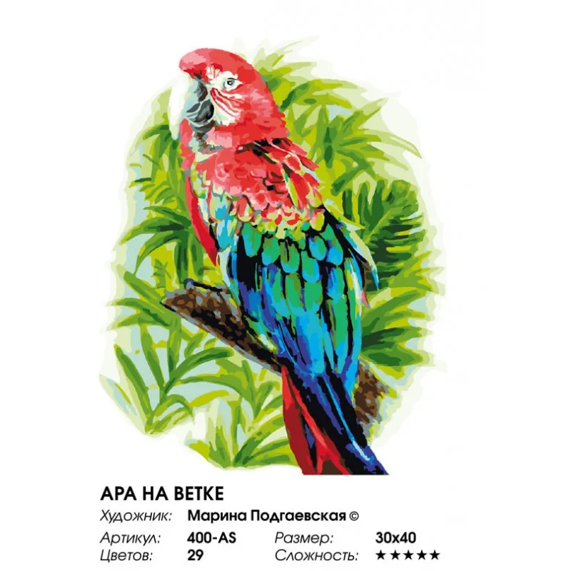 "Ара на ветке" Живопись по номерам на холсте 30 * 40. Белоснежка. 400-AS