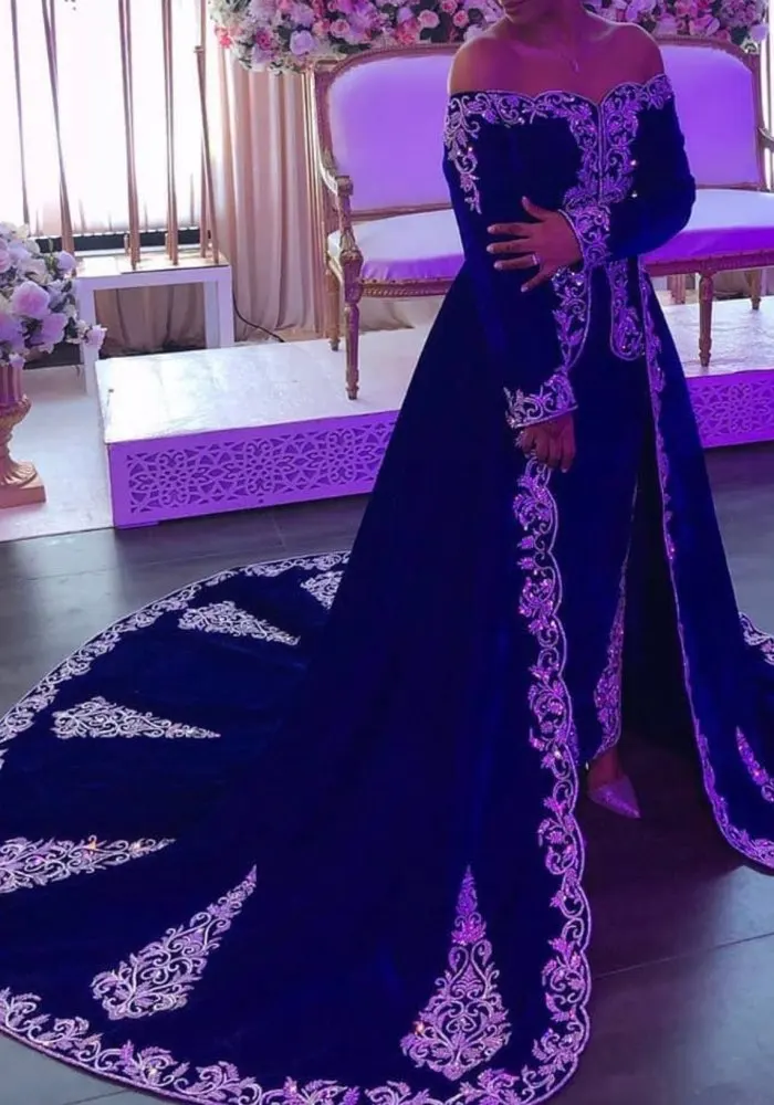 Темно-синий кафтан вечерние официальные платья с нарукавником без бретелек 2021 с длинным рукавом кружевные платья для выпускного вечера