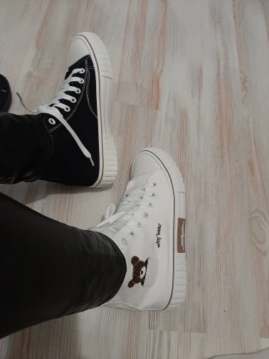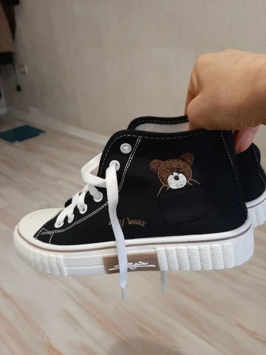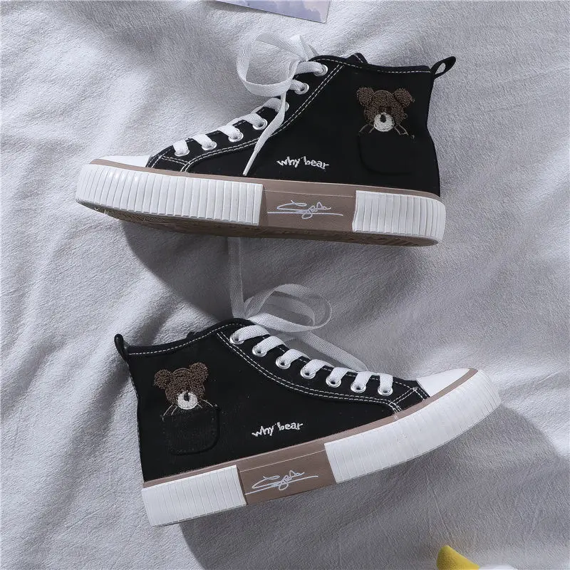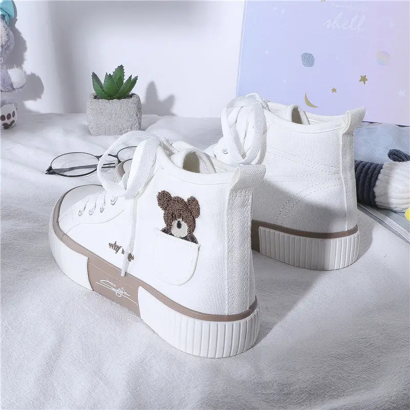 Женские кроссовки; Обувь Kawaii; Спортивная Вулканизированная обувь на плоской подошве с высоким берцем; Повседневная модная обувь с медведем; Сезон весна; Симпатичные кроссовки в стиле Харадзюку; Прямая поставка