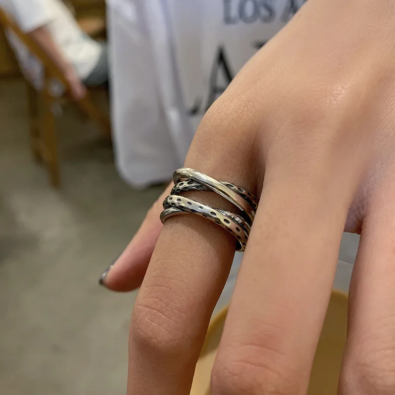 Женское кольцо с двойным крестом LIVVY, серебряное, черное, открытое, в стиле ретро