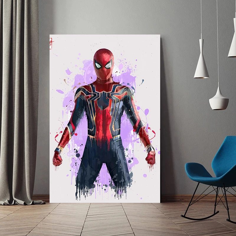 Акварельные картины Марвел, Железный человек, Человек-паук, холст, плакаты с Мстителями и принты, настенные картины для украшения комнаты, дома