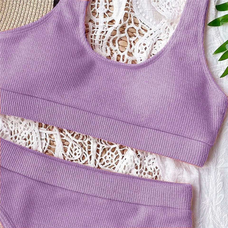 Купальник женский, однотонный бикини с треугольным низом, летний раздельный купальник
