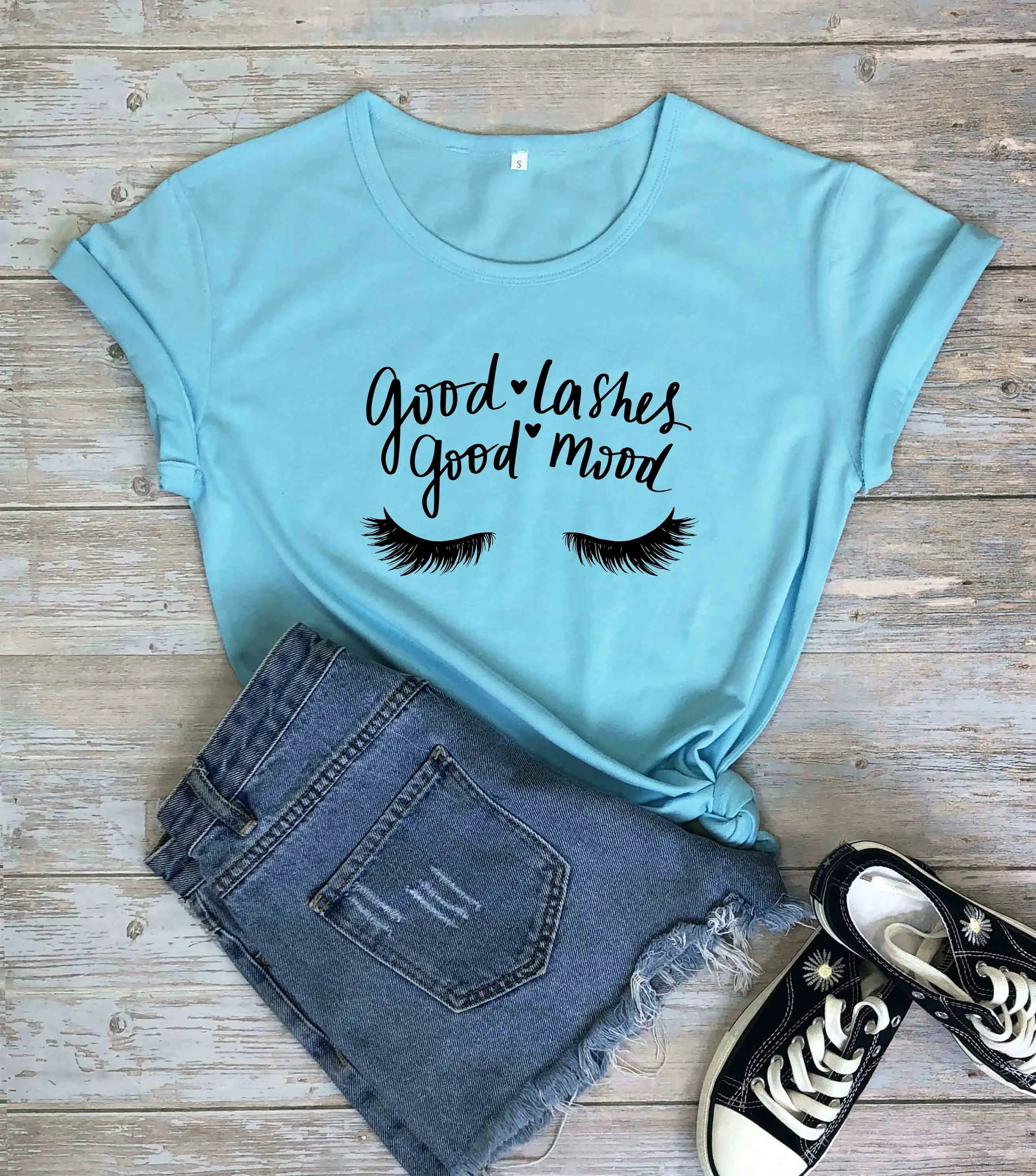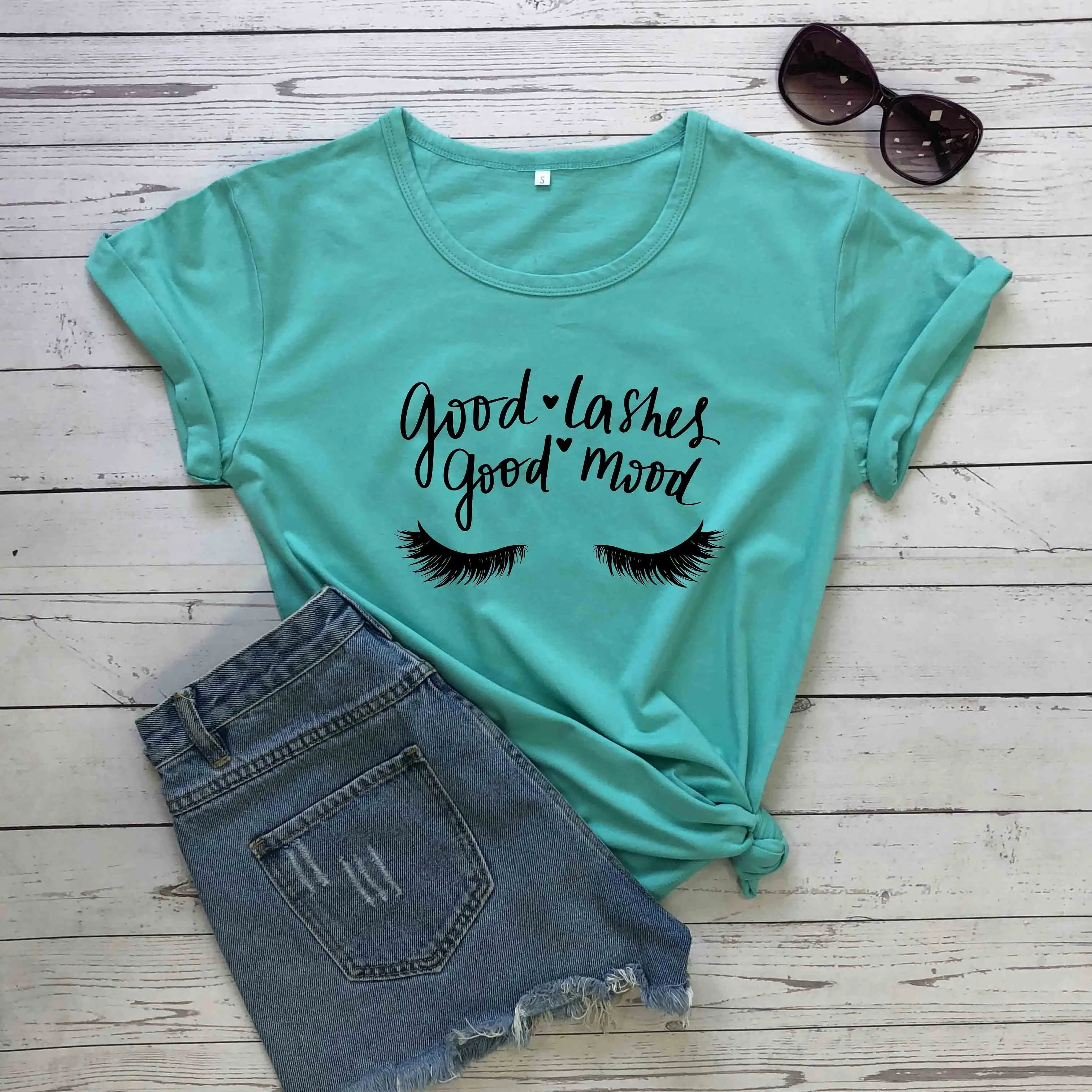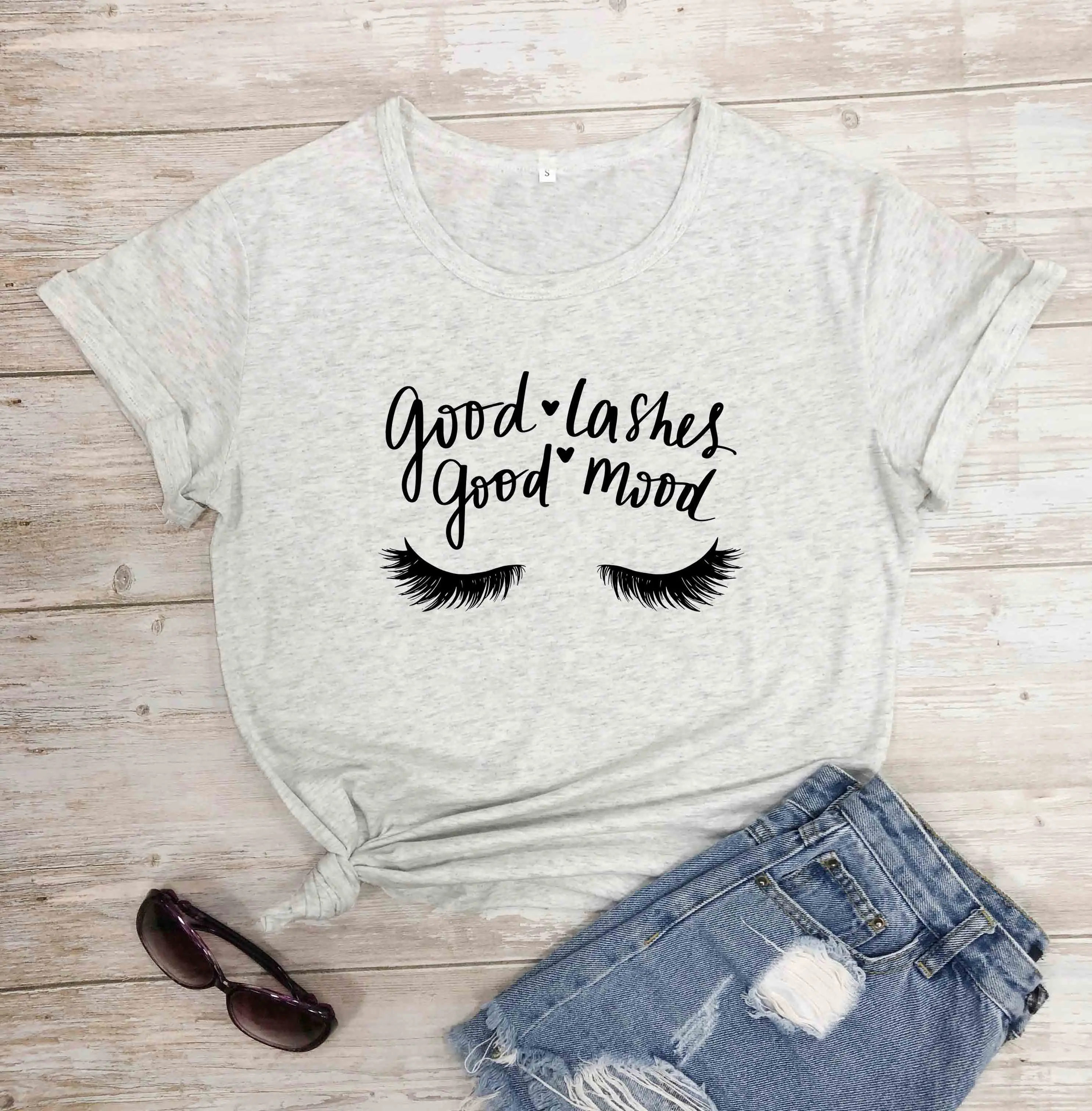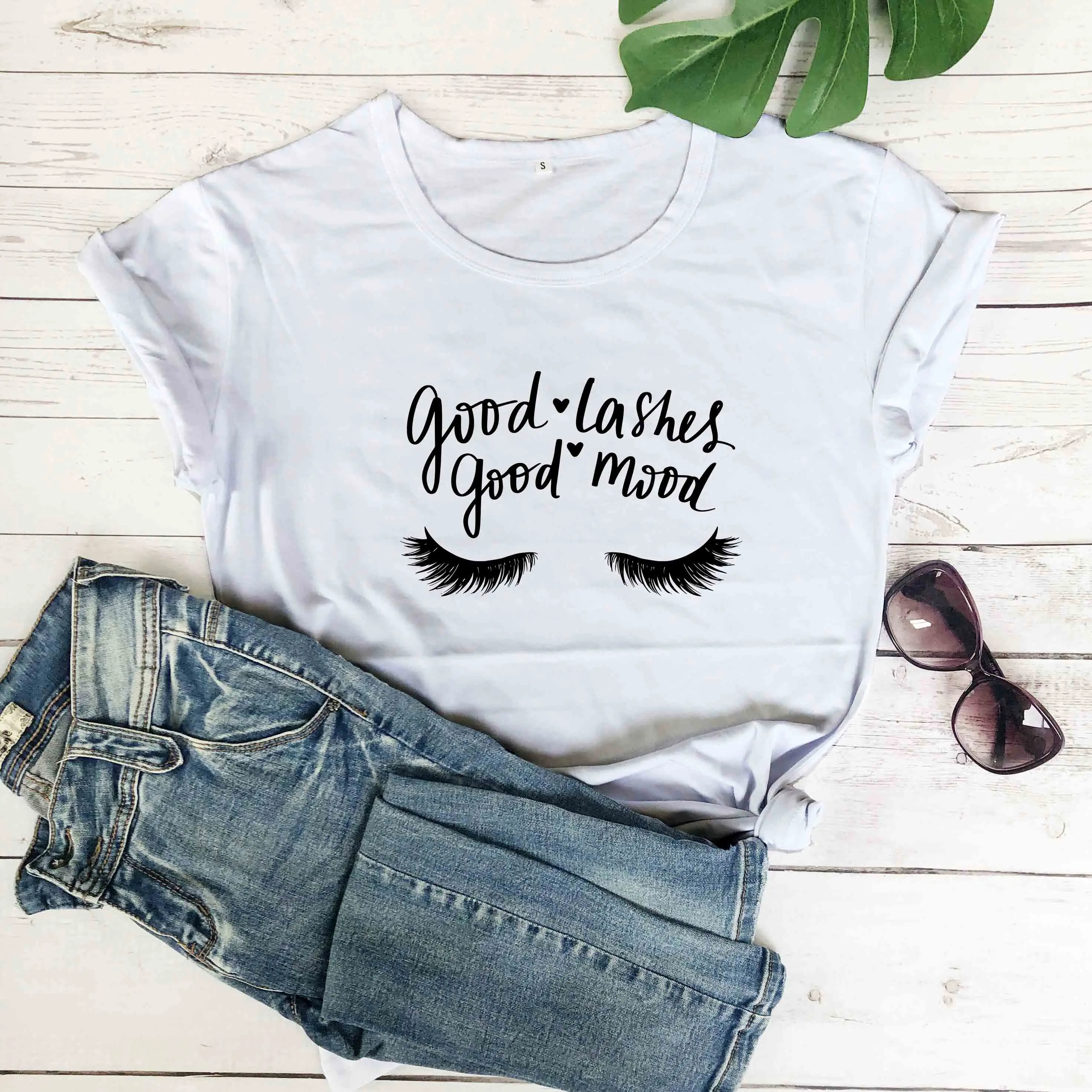 Футболка хорошего настроения с ресницами, женская модная графическая футболка из чистого хлопка, повседневные хипстерские винтажные праздничные футболки, подарок со слоганом, художественные уличные Топы