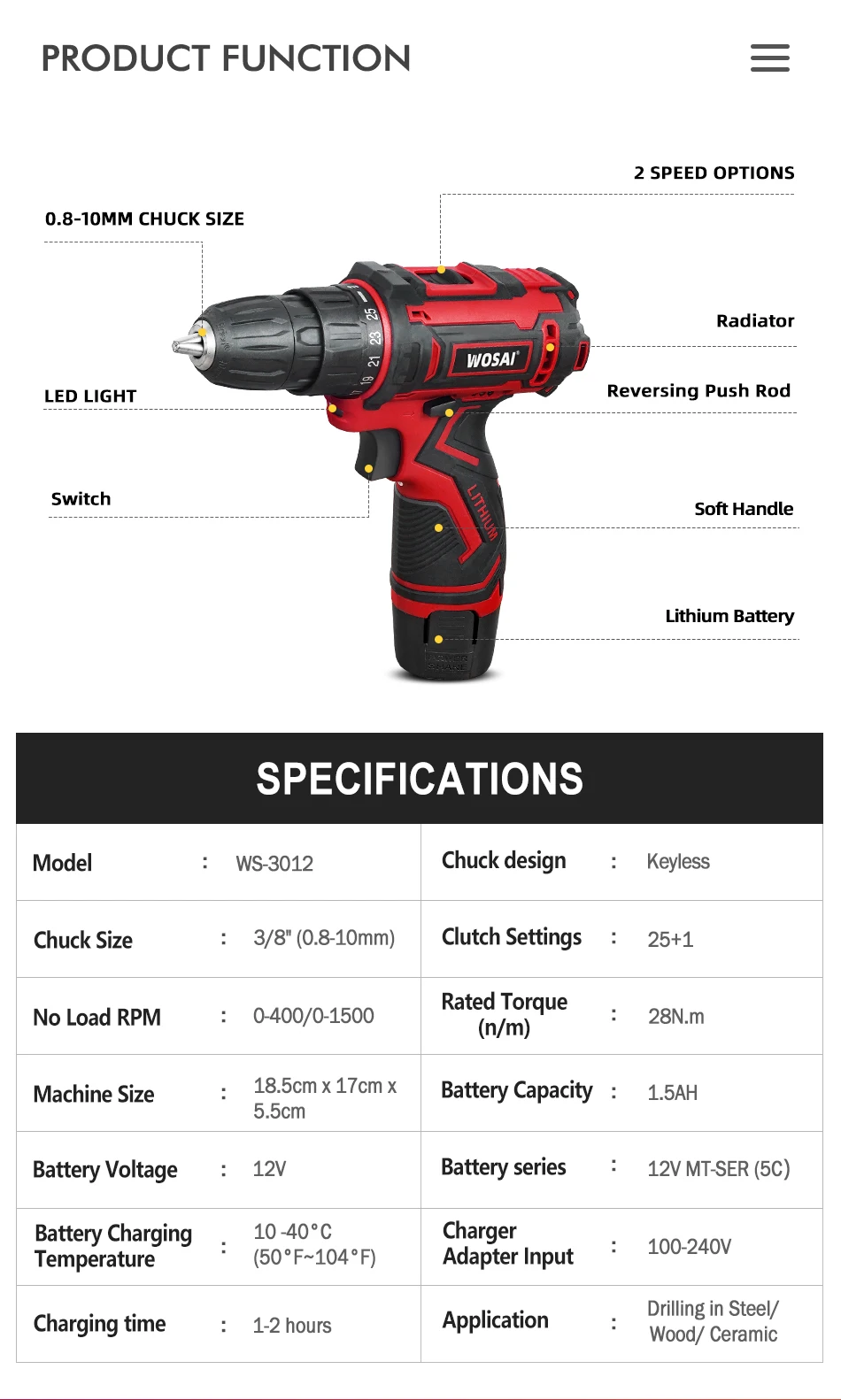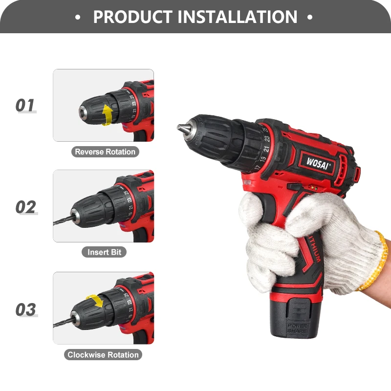 Шуруповерт VVOSAI, 16 в MAX, 25 + 1 настройки крутящего момента, 2 ...