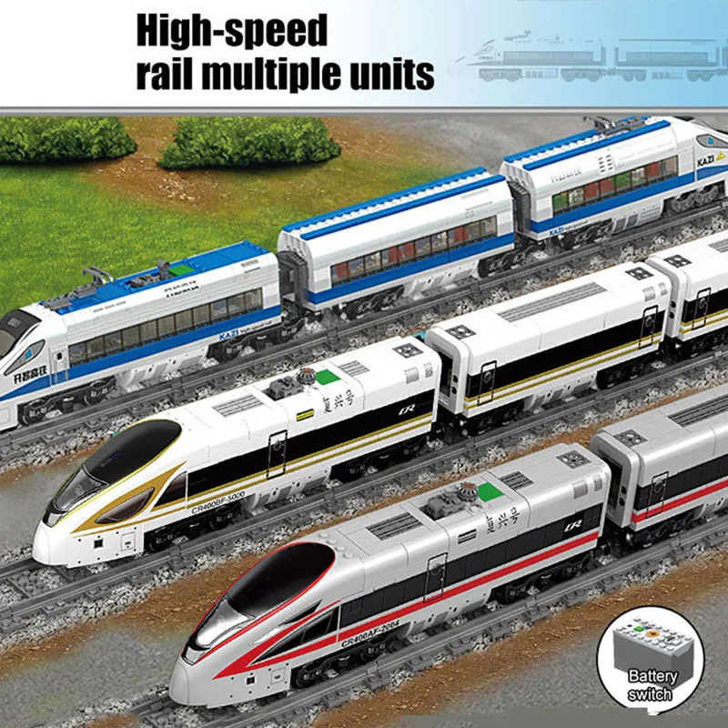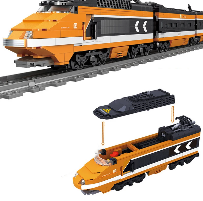 Железнодорожный поезд, серия строительных блоков, технический город с дистанционным управлением, высокоскоростной Железнодорожный конструктор, игрушки для детей, подарки