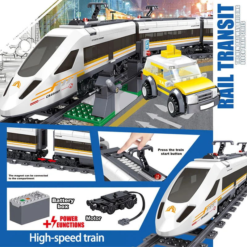 Радиоуправляемый железнодорожный поезд, серия транспортных строительных блоков, технический городской пульт дистанционного управления, скоростные рельсовые кирпичи, игрушки для детей, подарки