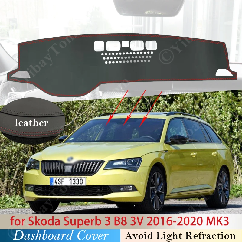 Искусственная кожа для Skoda Superb 3 B8 3V 2016 2020 MK3 крышка приборной панели защитная накладка автомобильные аксессуары приборная панель коврик от солнца