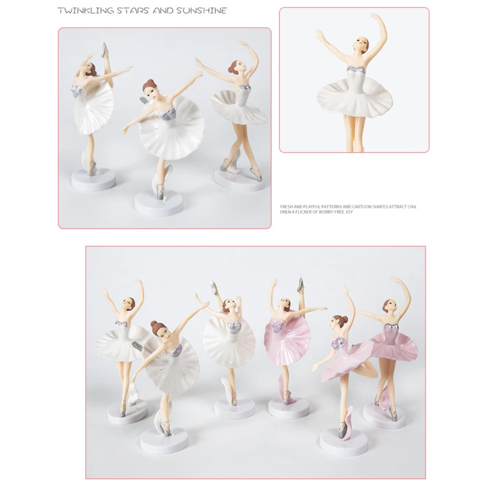 Балета статуэтки Танцы девушка платье для дня рождения; Нарядное украшения для танцев белый розовый комплект из 3 предметов, балерина Пластик десерт Украшение стола