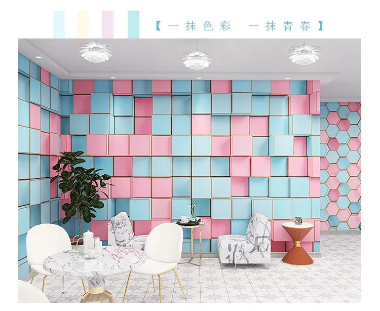 Скандинавская квадратная настенная краска Макарон для салона красоты, маникюрного салона, магазина одежды, фоновые водонепроницаемые обои icon star icon star icon star icon star icon star