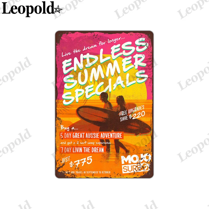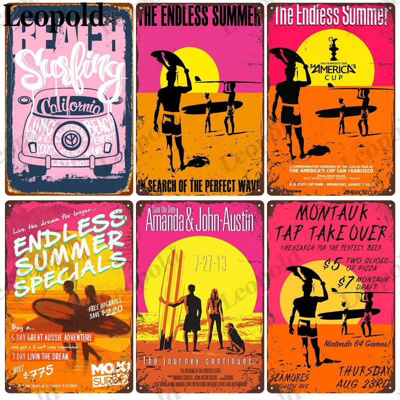 Жестяные знаки винтажная табличка закат, Летний пляж, серфинг, металлический постер, настенное украшение для паба, магазина, ресторана, кофейни