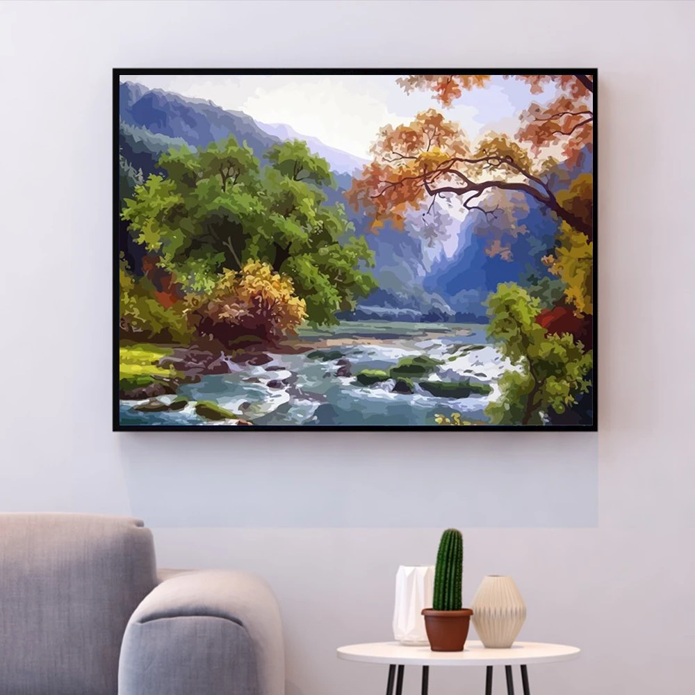 Пейзаж водопад DIY Краска по номерам посылка масляная краска 40*50 ...