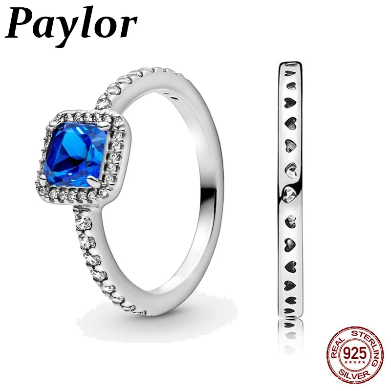 Paylor новый оригинальный 925 серебро синяя квадратная блеск гало кольца для Для женщин свадебные Обручение кольца дропшиппинг 2021
