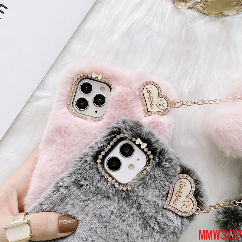 FeaturesLuxury Warm Rabbit Fur Plush diamond Phone Case For Redmi Note 10 Pro