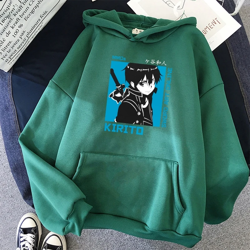 Толстовка с капюшоном Sword Art Online Kirito, черная одежда большого размера, уличная одежда, мужская толстовка с капюшоном и рукавами, худи с принтом в стиле Харадзюку