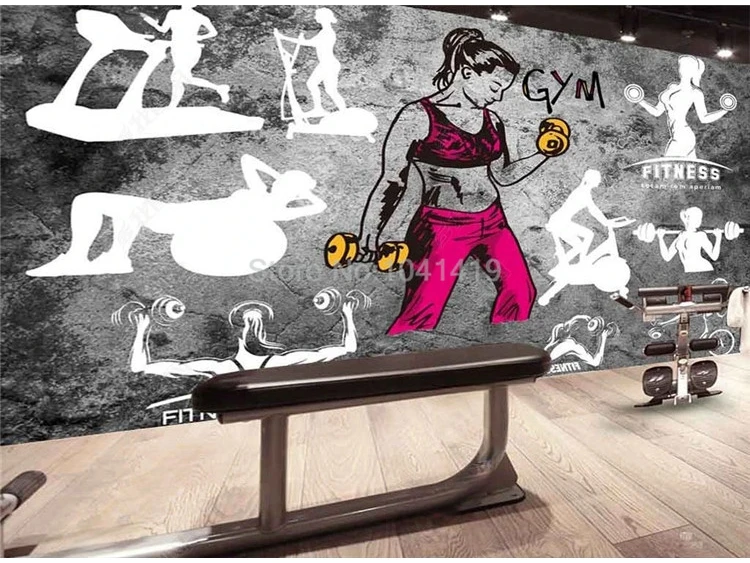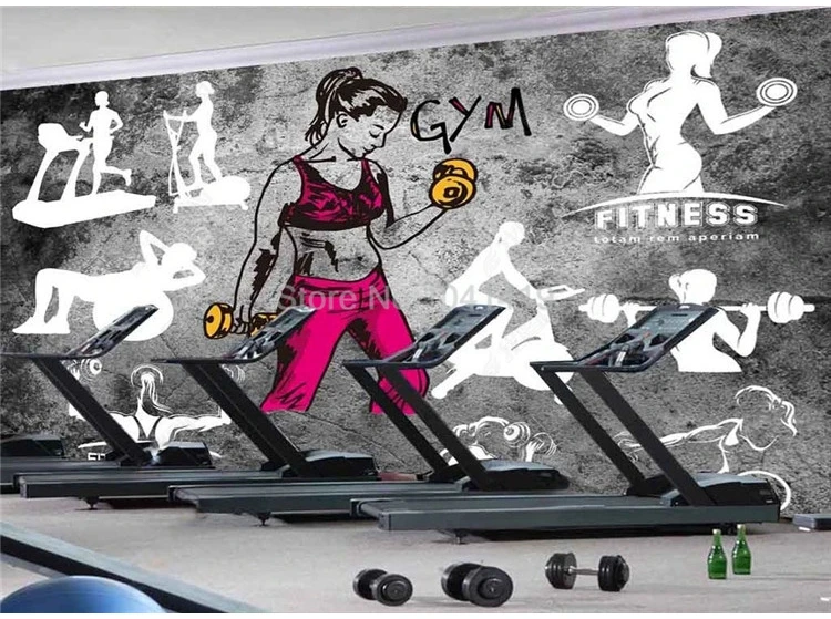Настенные обои любого размера в стиле ретро, цементная стена, красота, спорт, фитнес, тренажерный зал, декор для стен