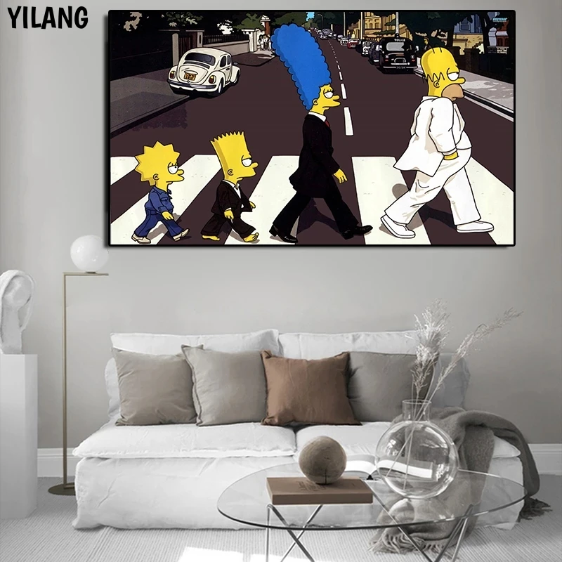 Simpsoning Abbey Road, Барт, Гомер, Мардж, художественные плакаты на холсте, живопись, печать в гостиной, домашнее искусство, Декор