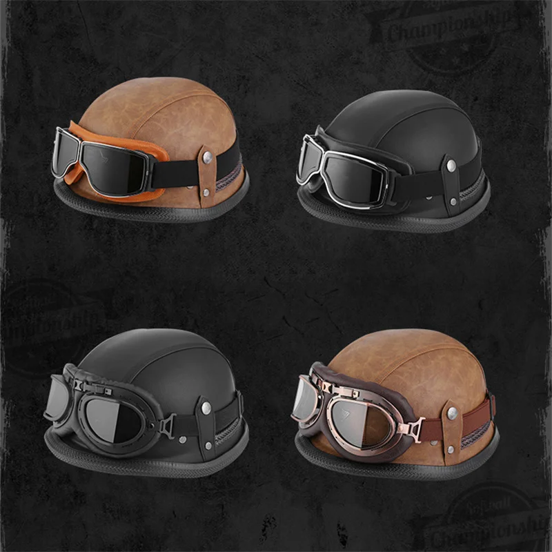 Новинка 2020, из искусственной кожи, ретро шлемы 34, мотоциклетный ...