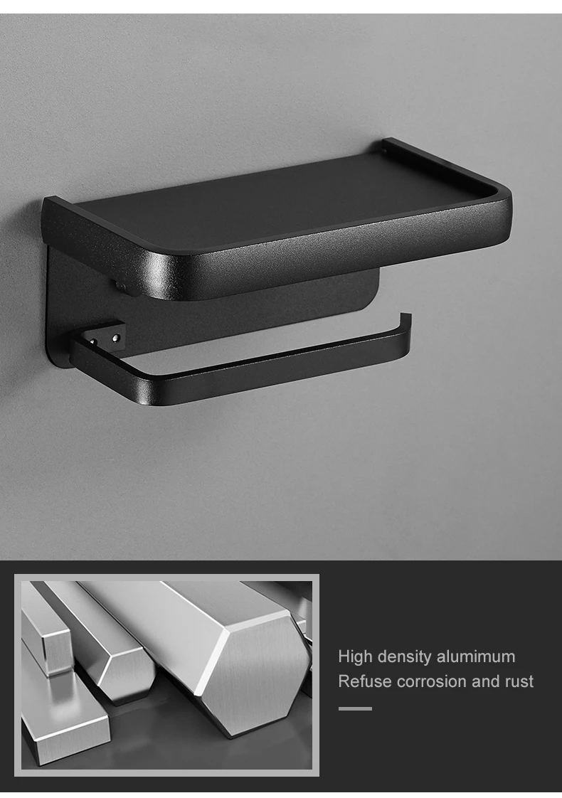 Держатель для туалетной бумаги MOLI, матовый, черный, алюминиевый, самоклеящийся, без отверстий, набор аксессуаров для ванной ML609