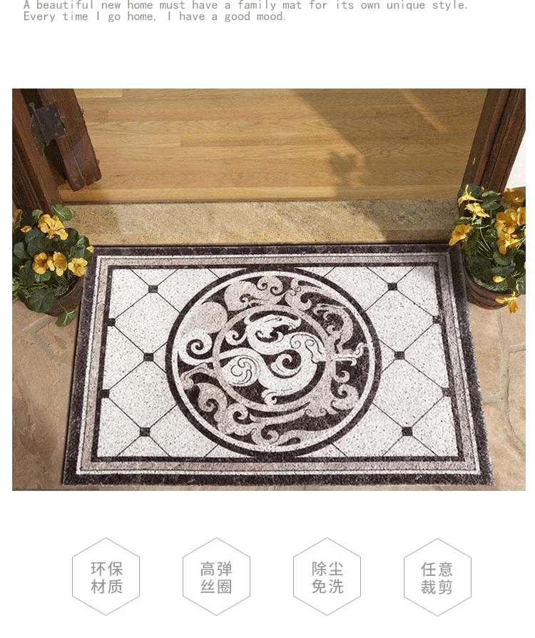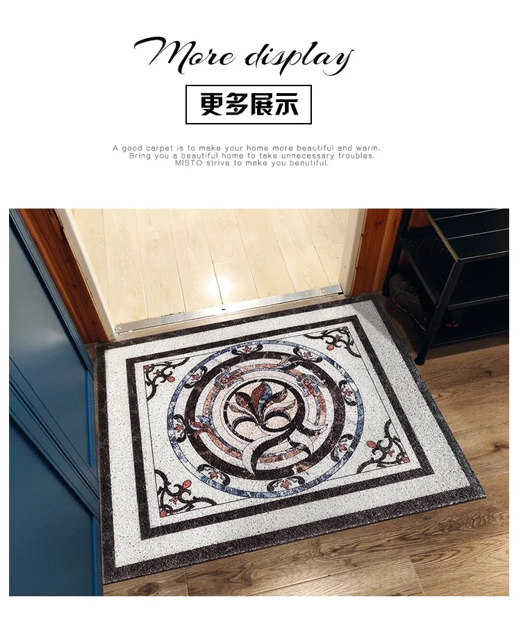 > Коврик можно настроить на в соответствии с размером входа, пожалуйста, свяжитесь с нами, если вам нужно сделать заказ. > Изготовлен из экологически чистого материала, безвредного для человеческого тела. > Противоскользящий Материал коврика из ПВХ может предотвратить соскальзывание и защитить вашу безопасность, материал шелковой петли может впитывать влагу с вашей обуви, делая пол чистым и сухим, также удаляет пыль, грязь, снег и т. д. > Его можно свободно разрезать на любую форму, он подходит для внутреннего и наружного подъезда, коридора, гостиной, спальни, ванной и т. д. > Толщина коврика составляет около 8 мм, он может полностью лежать на полу и не мешать открытию и закрытию двери. > Когда коврик заполнен частицами грязи, вы можете просто очистить его с помощью пылесоса или использовать водяной шланг для краску, а затем дать ему высохнуть на воздухе перед следующим использованием.
