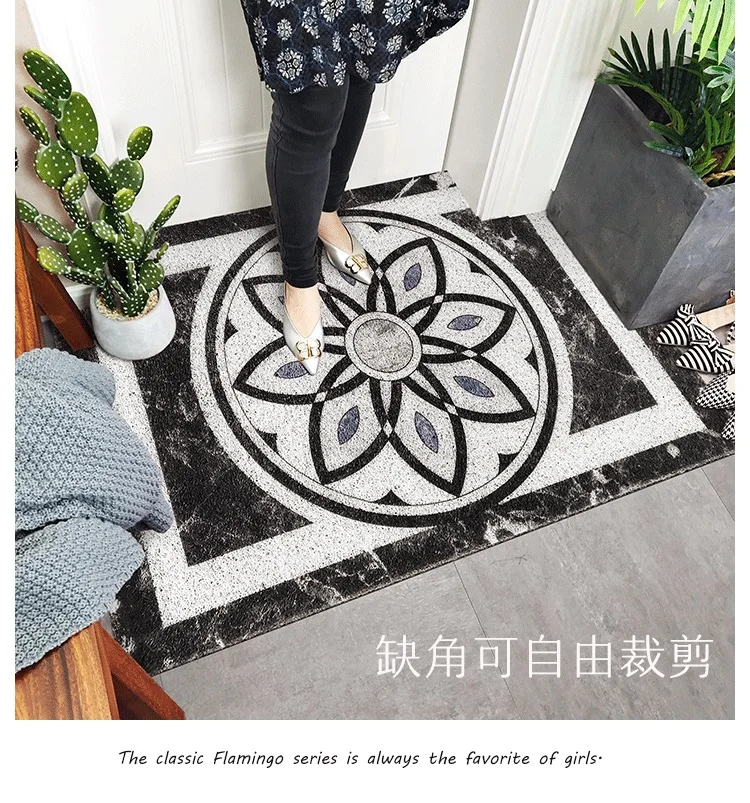 Придверный коврик с черным узором, Противоскользящий коврик, можно разрезать, коврик для гостиной, коврик для ванной, кухонный коврик, домашний коврик из ПВХ