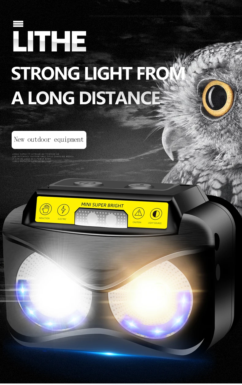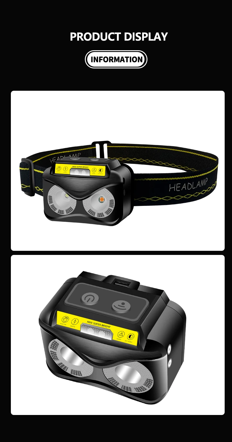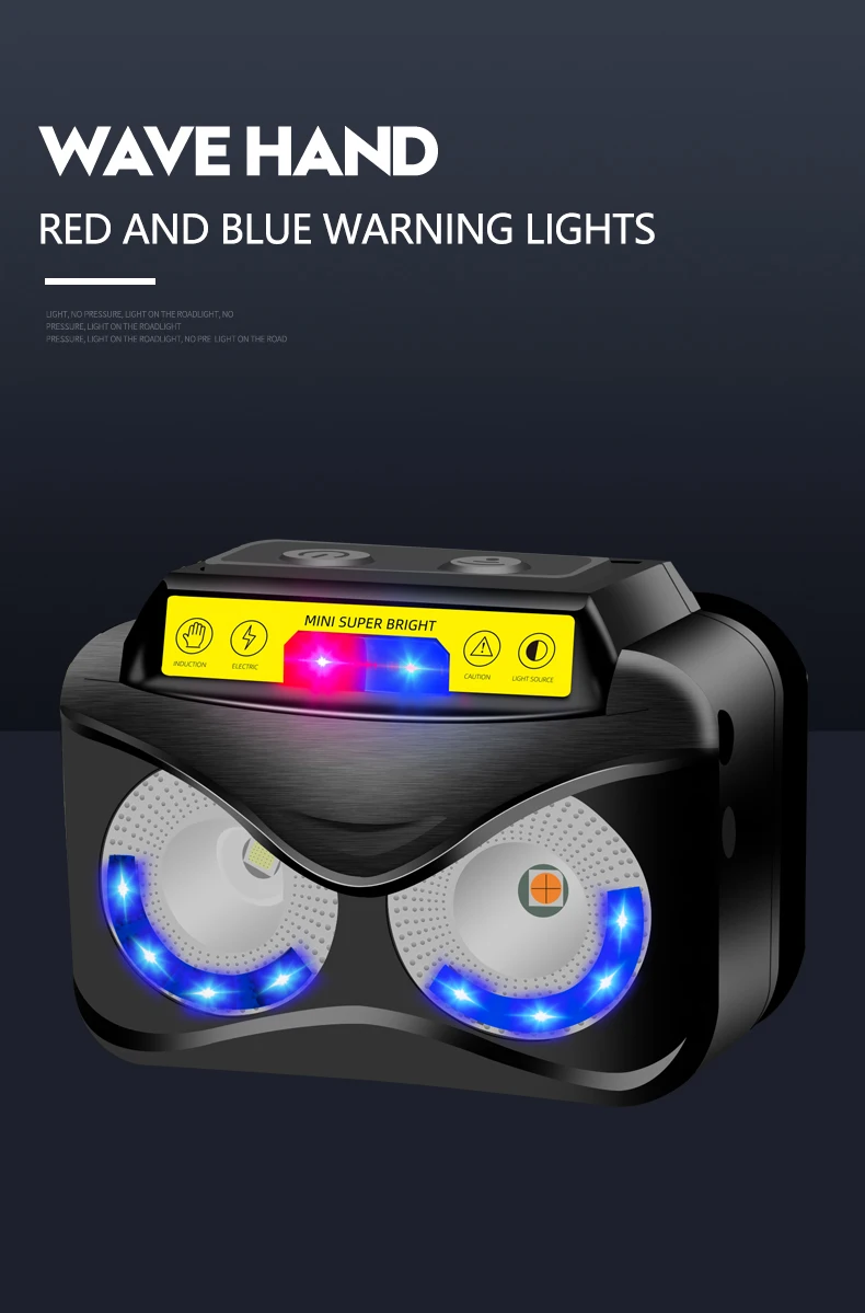 Головсветильник фонарь с датчиком движения тела, зарядка через USB, индуксветильник Головной фонарь, водонепроницаемый Головной фонарь, Головной фонарь