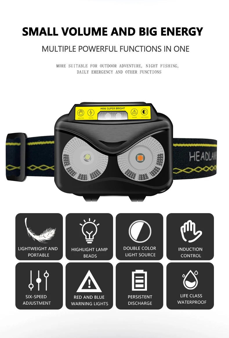 USB Перезаряжаемые фары Портативный движения тела Сенсор головной светильник Водонепроницаемый головки вспышки света светильник налобный фонарь индукции спереди светильник
