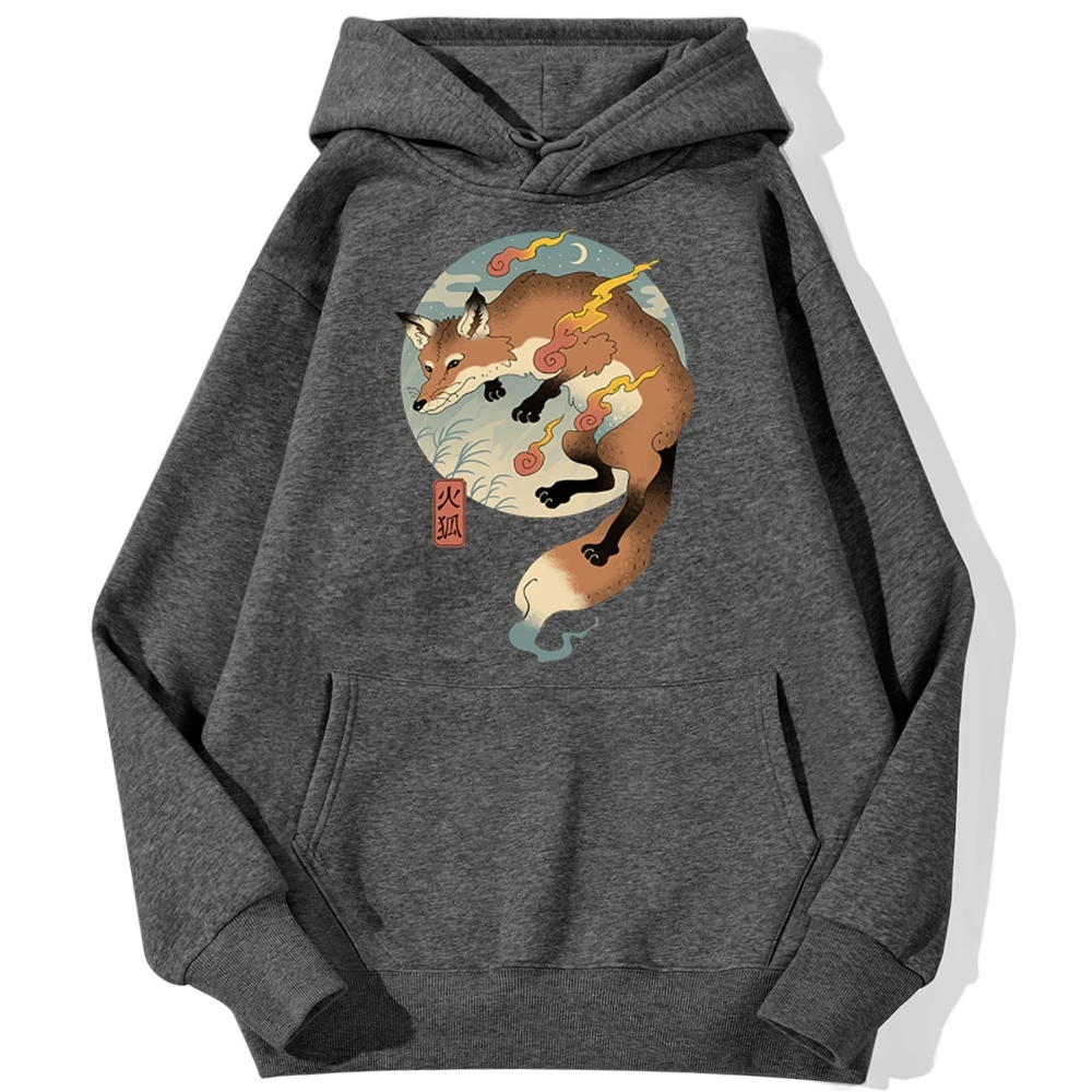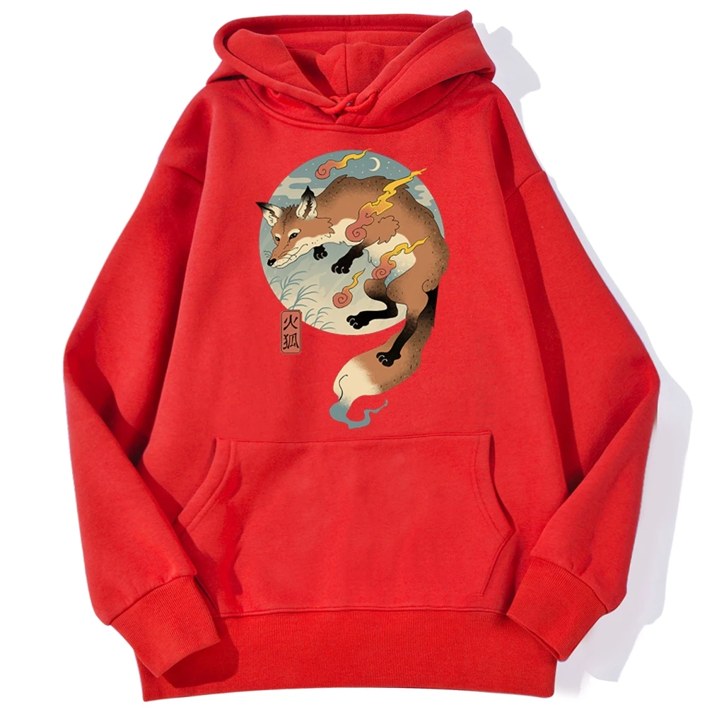 Толстовка мужская с японским принтом огненной лисы, уличная одежда, свободные худи в стиле Харадзюку, теплые пуловеры, осенняя кофта в стиле хип-хоп