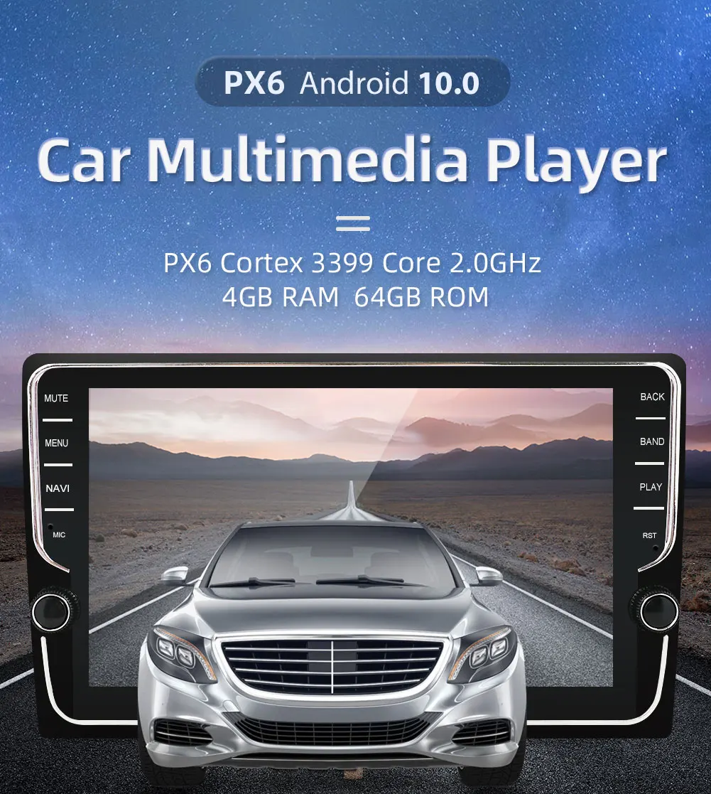 9 дюймов Android 10,0 + емкостный экран + 1024*600 + Восьмиядерный процессор RK3399 2,0 GHZ CPU + DDR3 4 GB Flash + 64 GB памятьPX6 Cortex A72 + A53Выходная мощность: 4*45 ВтBluetooth 5,0, радио IC TDA 7786. Усилитель 7851HDMI: видео выходРабочая температура-20 ℃-+ 70 ℃Видео: поддержка 1080P,AUX IN, RCA выход