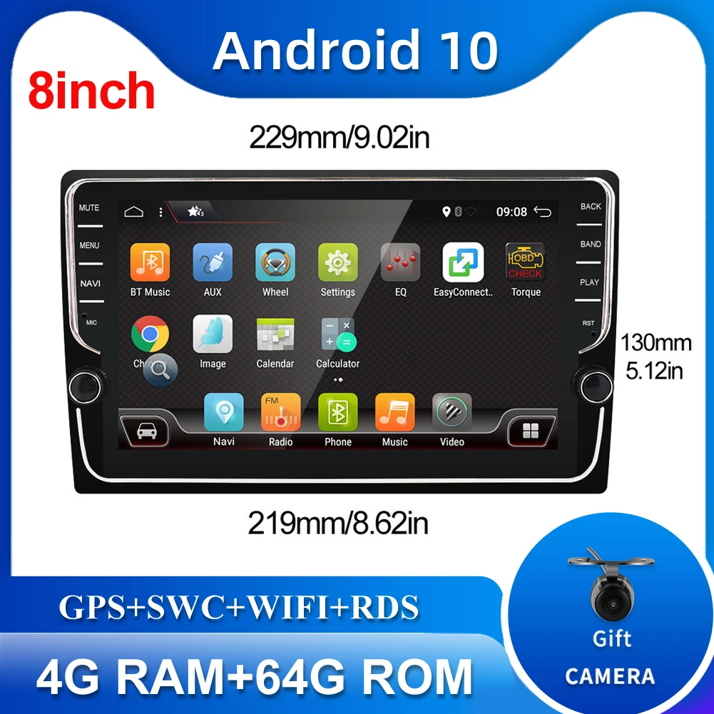 8 дюймов Автомобильный мультимедийный плеер 1 din автомобильный радиоприемник андроид 10,0 бесплатная Камера карта GPS навигации 4 Гб + 64 ГБ RDS FM AM SWC USB Радио
