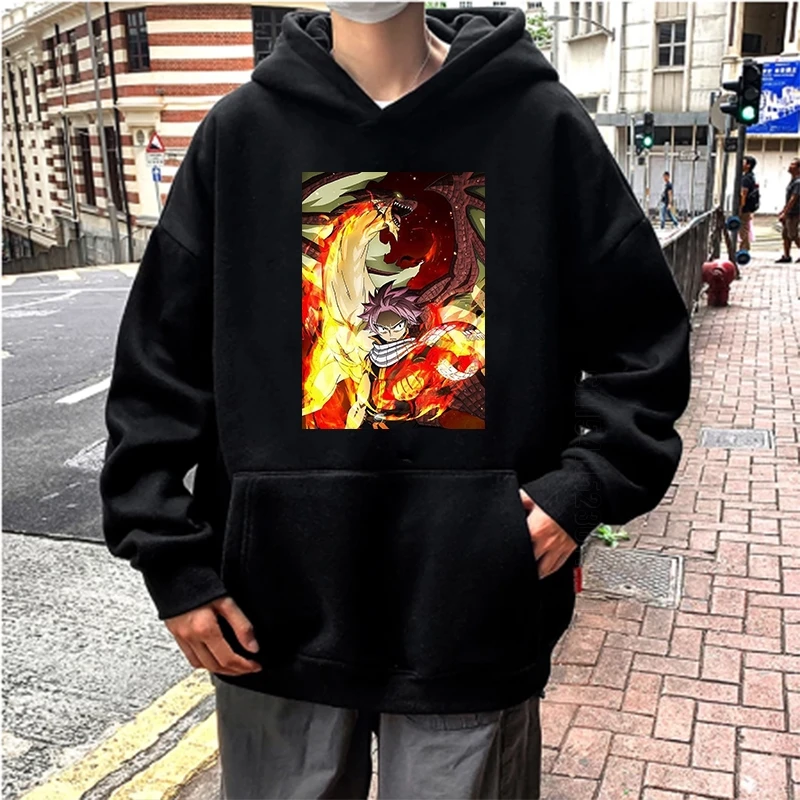 Толстовка Natsu с японским аниме Фея хвост, худи с принтом постера, уличная одежда, мужской свитшот, мультяшный пуловер, Худи оверсайз