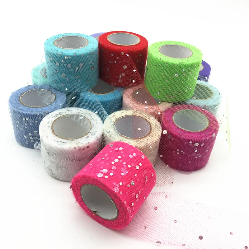 Рулон тюля с блестками, 25 ярдов, 5 см, для рукоделивечерние, дня р...