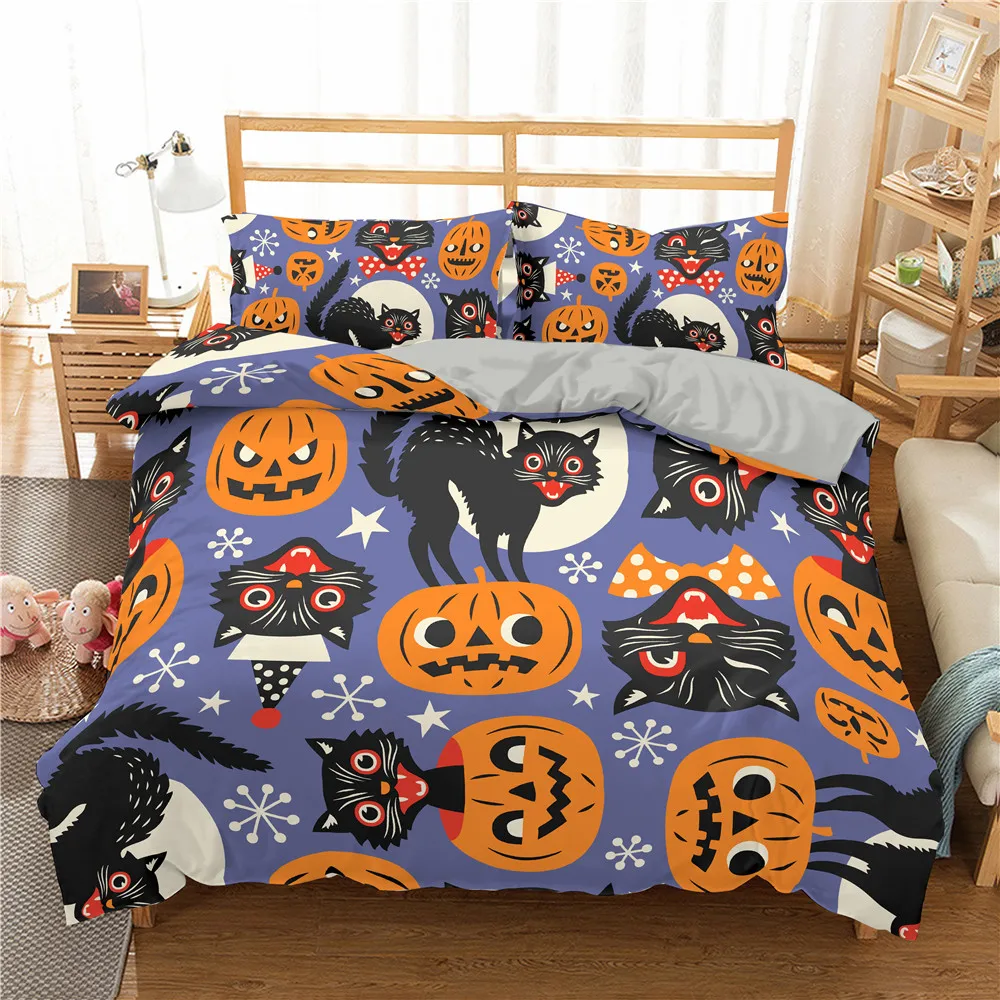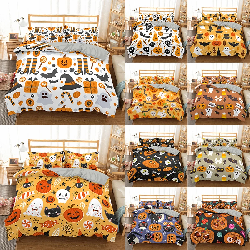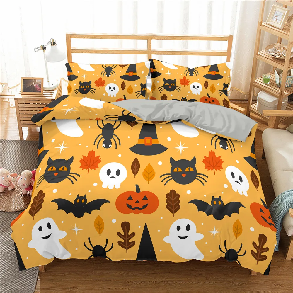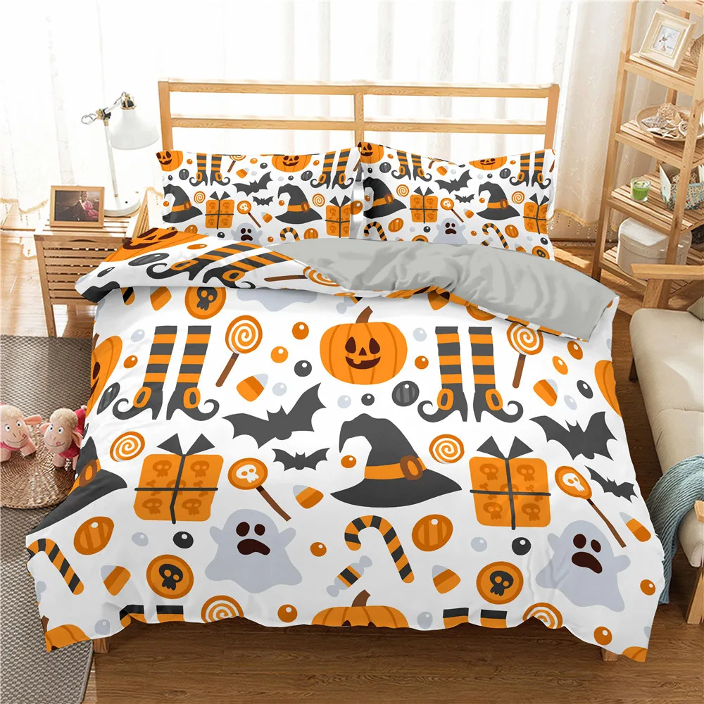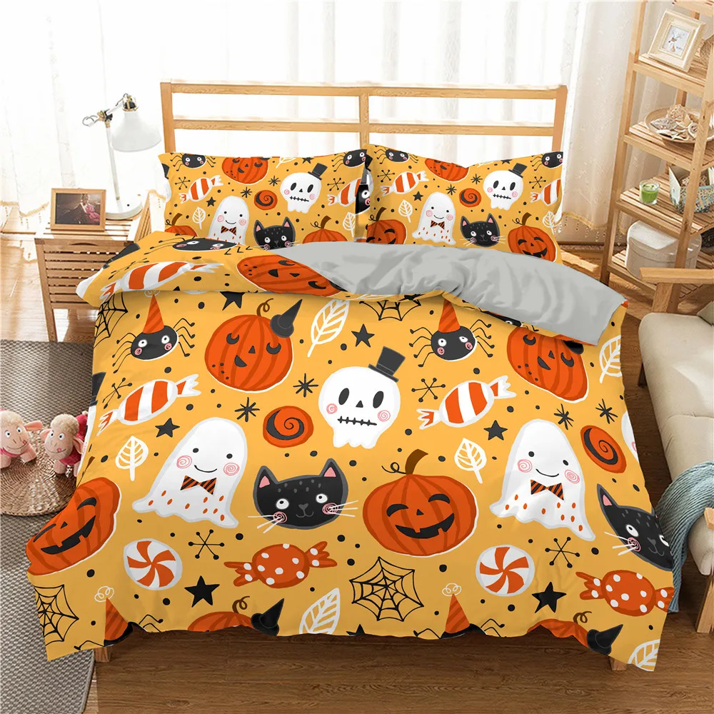 Комплект постельного белья, Хэллоуин, мультяшный стиль, комплект пододеяльника, наволочка, односпальный, двуспальный, Королевский Комплект постельного белья, 23 шт., 10 цветов