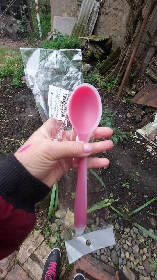 Хорошая ложечка персикового цвета. Не гнётся. Размер десертной ложки