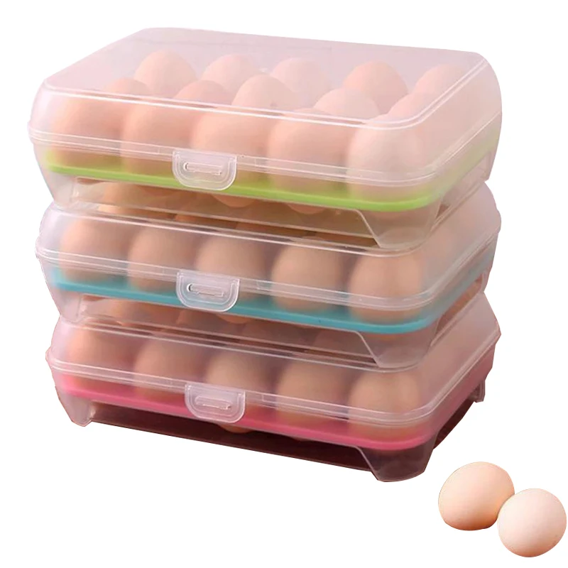 Пластиковый контейнер для хранения яиц, 15 ячеек, портативный контейнер для хранения пищевых продуктов, контейнер с крышкой для хранения яиц на холодильник