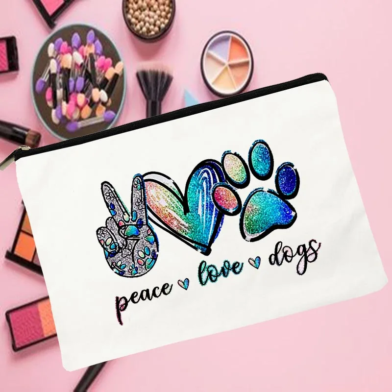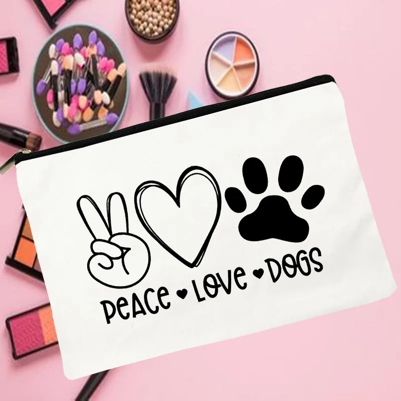 Peace Love собачьих лап принт сумки-косметички косметический чехол для путешествий туалетных принадлежностей, органайзер, хранилище, сумочка, сумка для девушек, клатч, студенческие сумки для карандашей