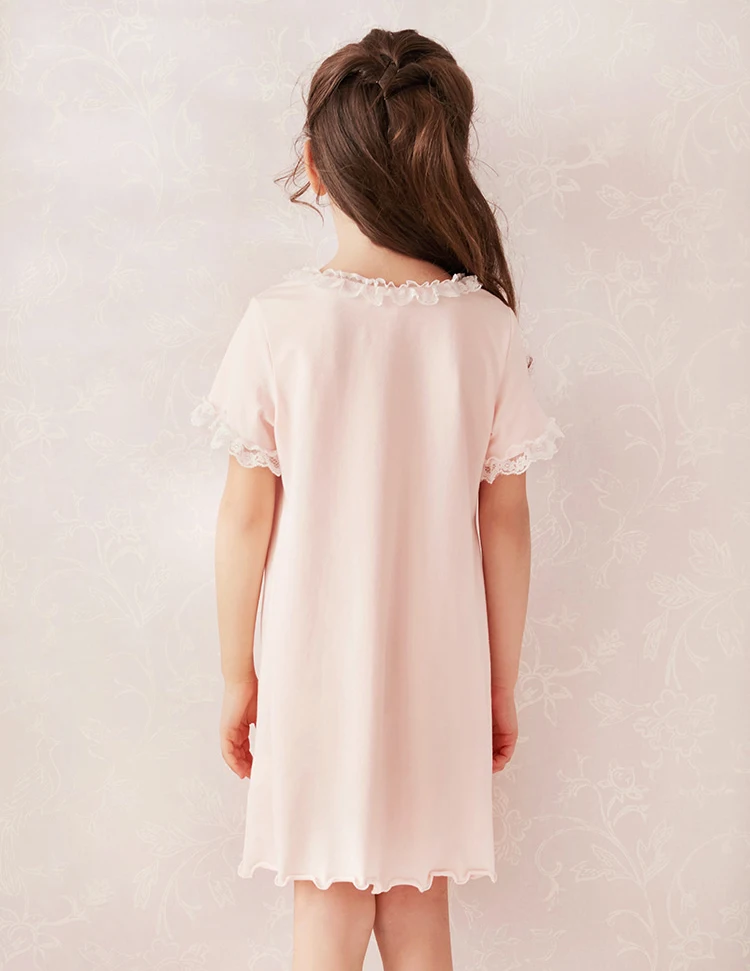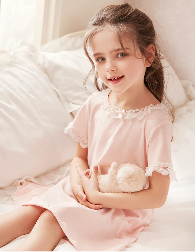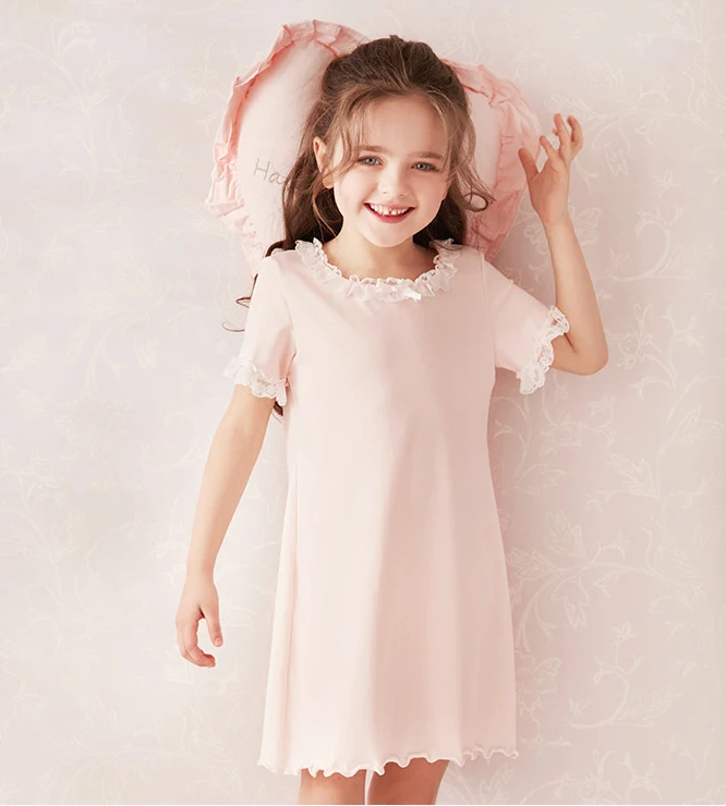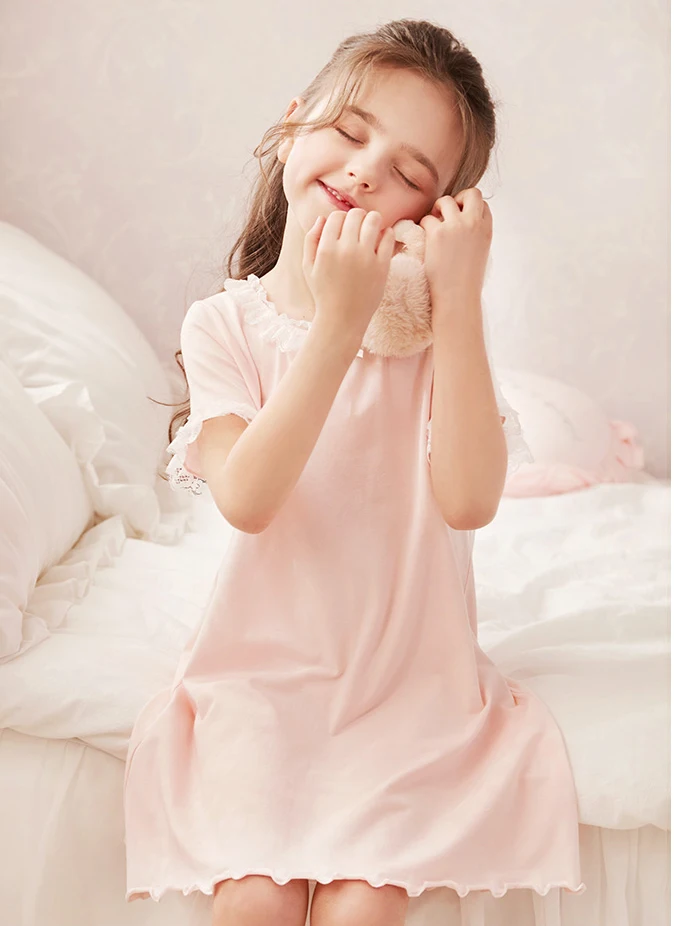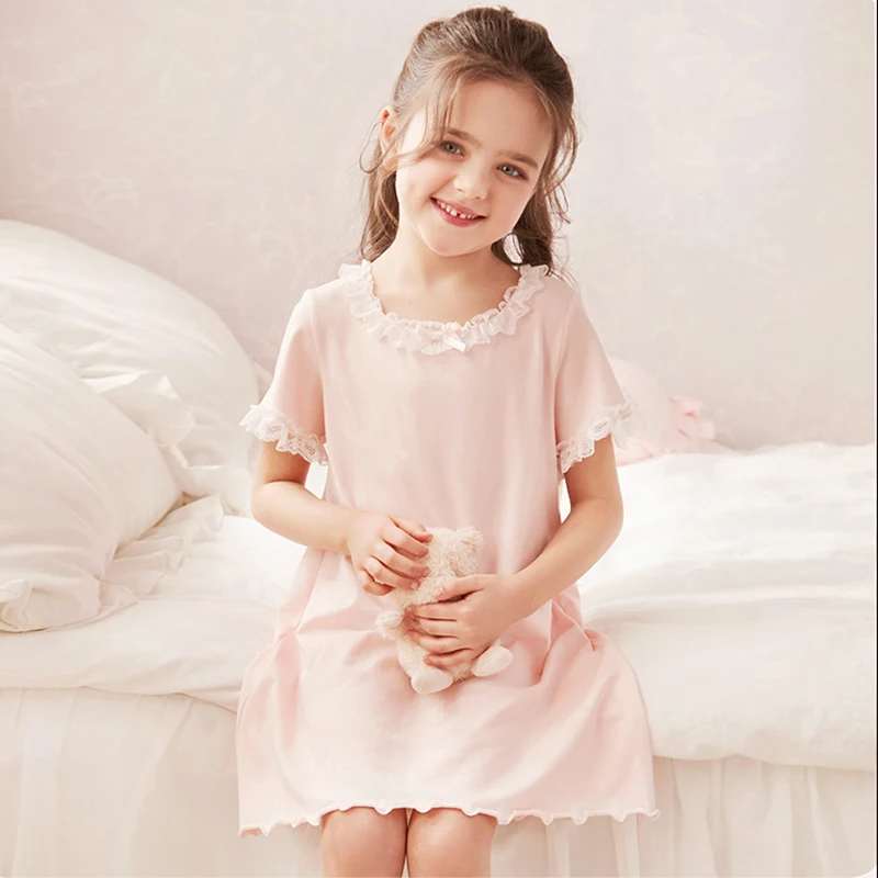 Детское платье в стиле Лолиты для девочек, пижамы принцессы, милые детские ночные рубашки с тесьмой, розовая ночная рубашка для маленьких девочек, одежда для сна
