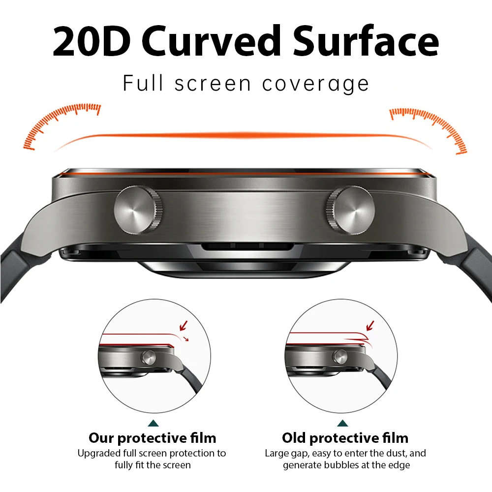 Закругленные края и правильный размер изогнутый дизайн не только позволяет избежать попадания пыли или воздуха в зазор между часами и защитной пленкой. Но также может легко выдавливать пузыри.