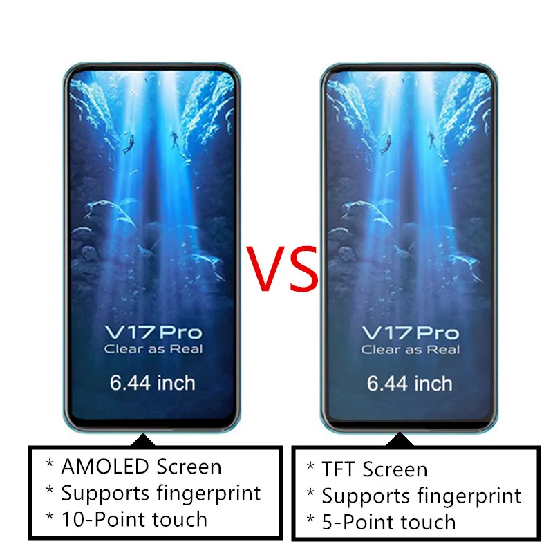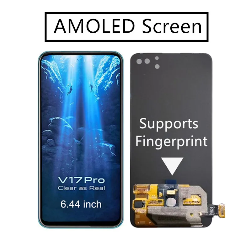 6,44 ''TFTAMOLED дисплей для VIVO V17 PRO V19 Pro LCD кодирующий преобразователь сенсорного экрана в сборе LCD Замена