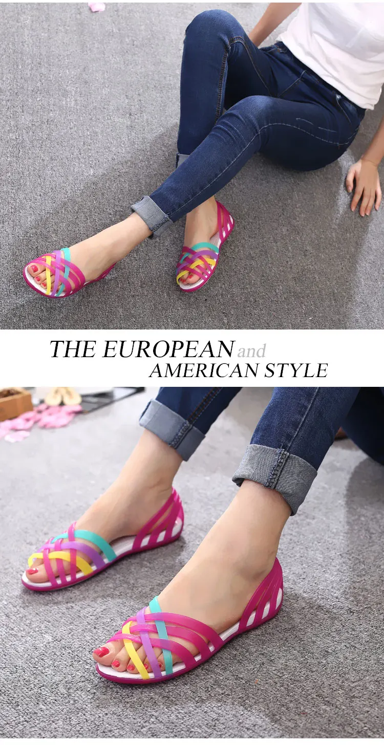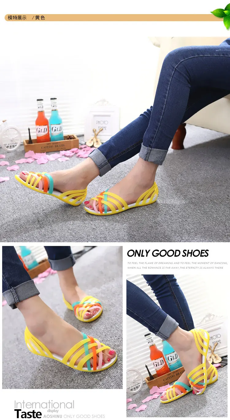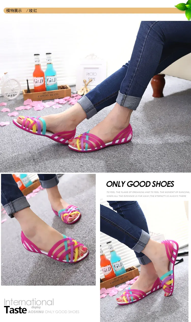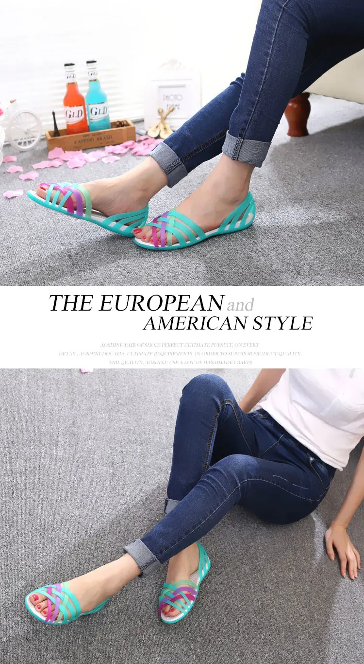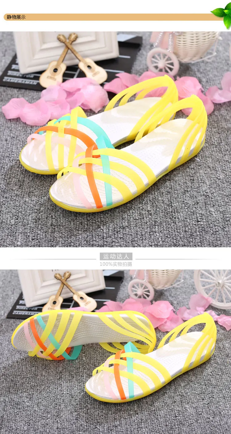 Новинка 2021, сандалии-желе на плоской подошве с кристаллами, удобные пластиковые летние сандалии с отверстиями, пляжная обувь для женской обуви
