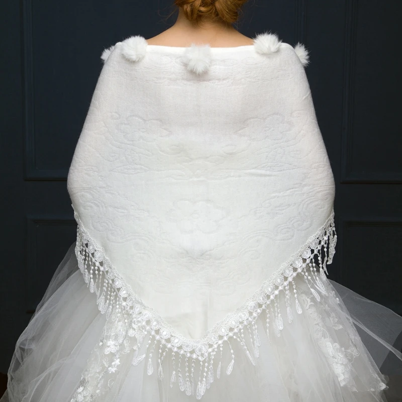 Свадебные накидки шали зимние треугольные свадебные куртки женские помпон-кисточка Болеро L21E