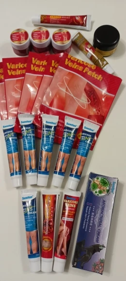 Посылка включает в себя:5 шт крем против варикозного расширения вен (без коробки)