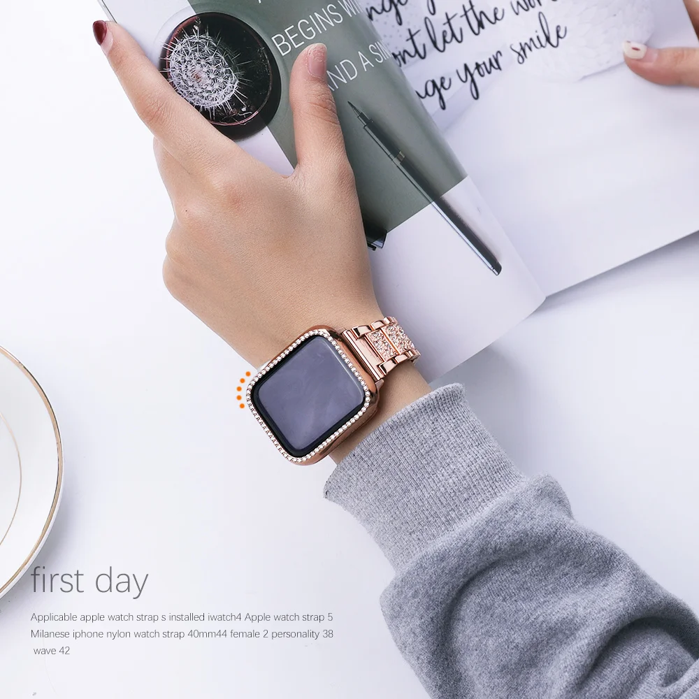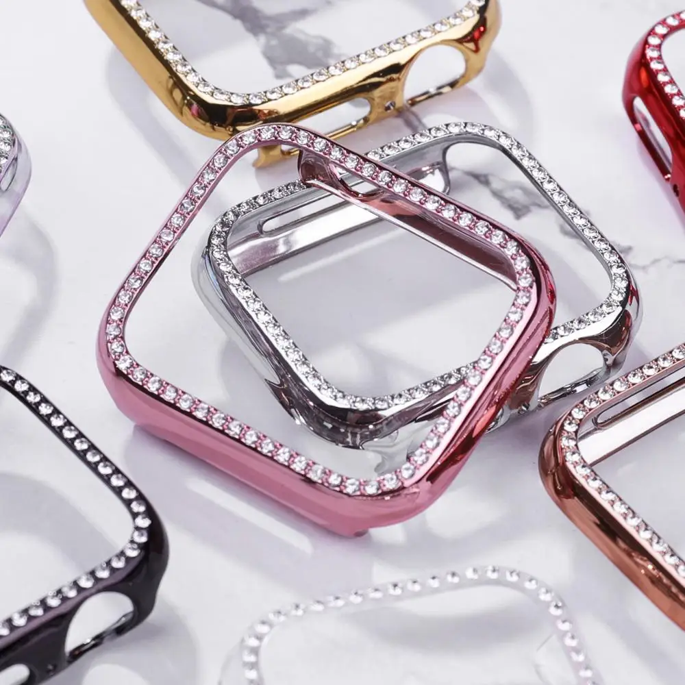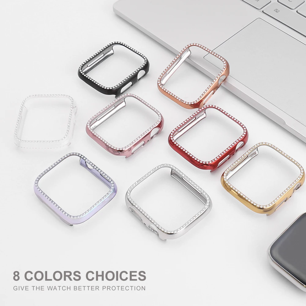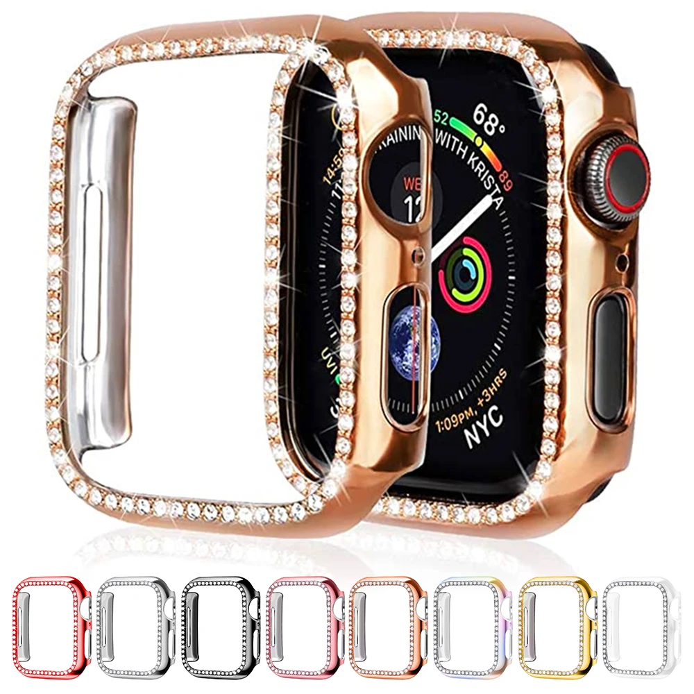 Чехол-бампер с алмазами Защитный чехол для Apple Watch чехол серии 6 54321 38 мм 42 мм для наручных часов Iwatch, 40 мм 44 мм часы браслет аксессуары