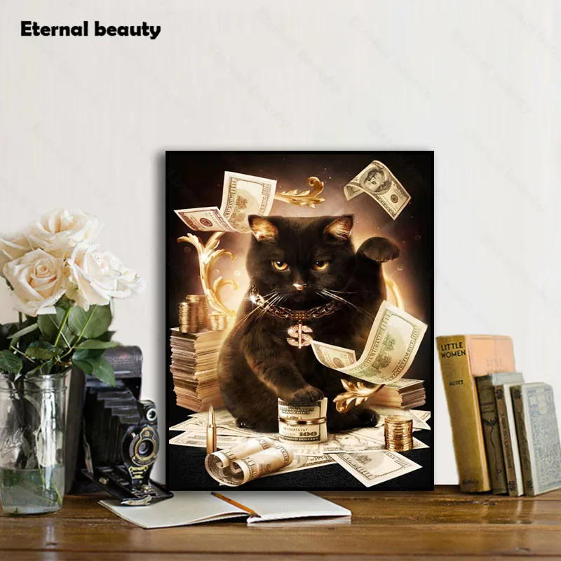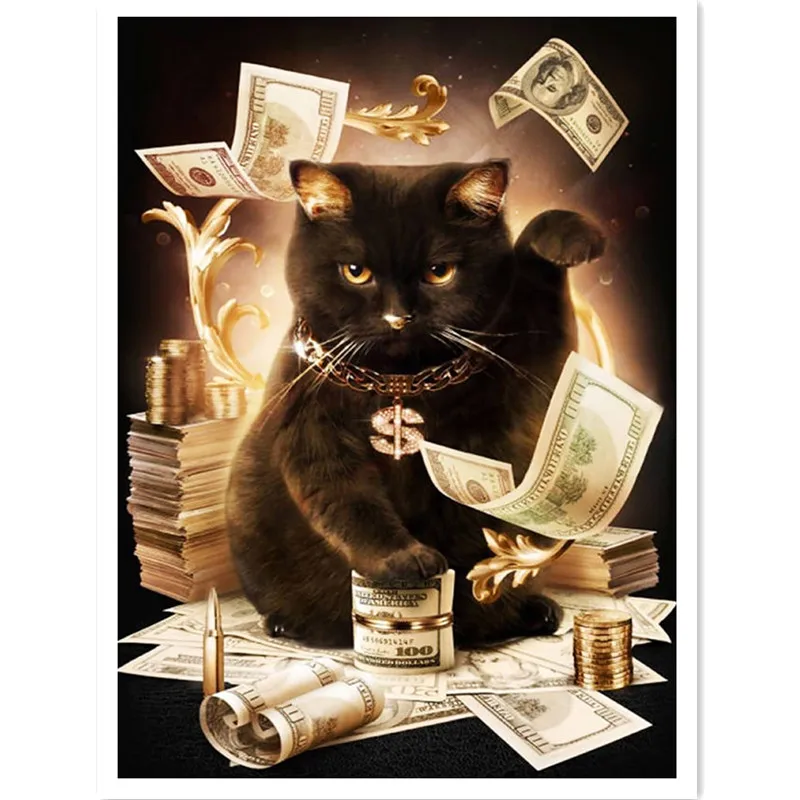 Полная Алмазная мозаика, алмазная живопись, доллары, Черный кот, алмазная вышивка, настенные картины, стразы, домашний декор для комнаты